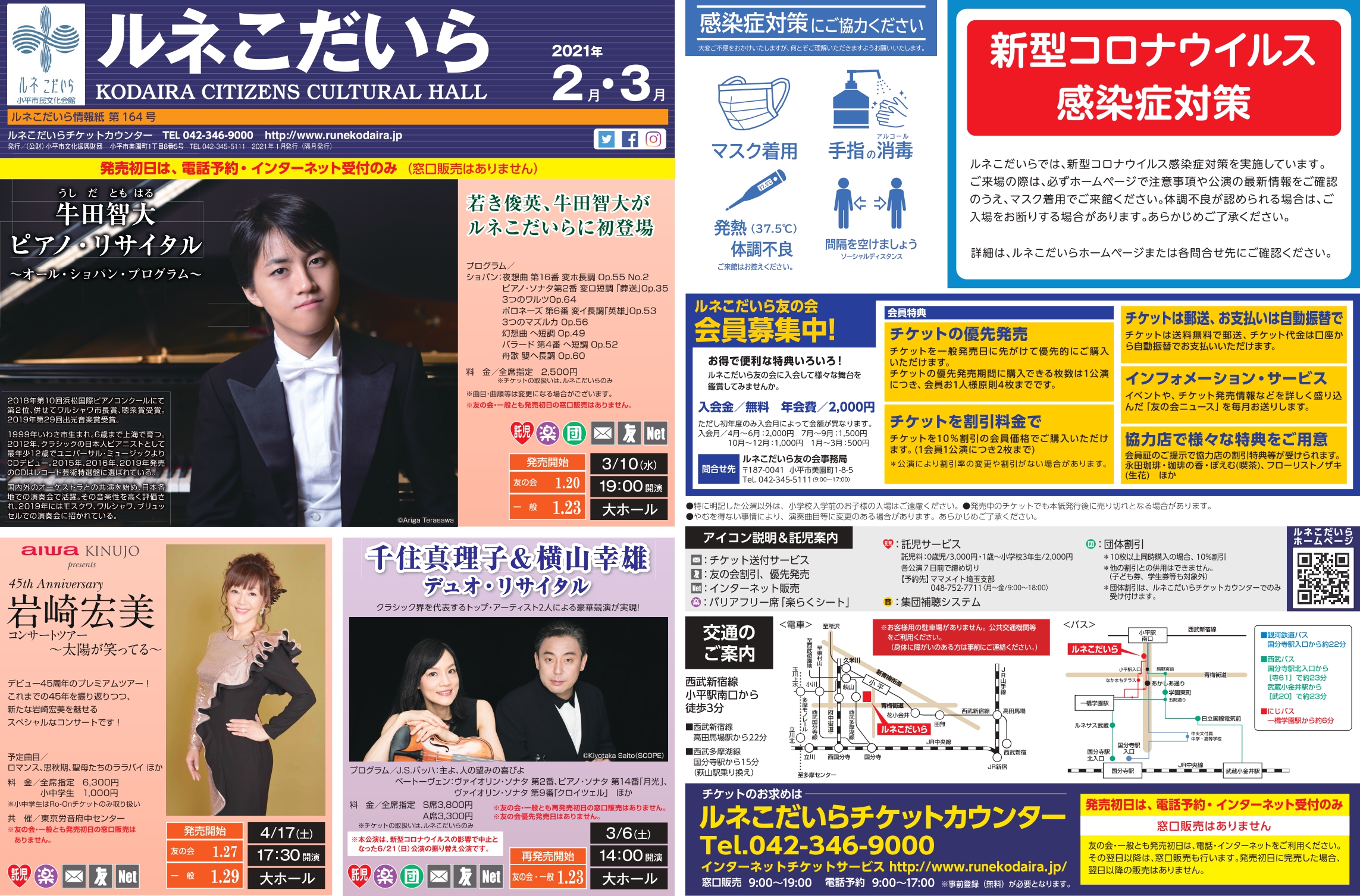 ルネこだいら情報紙2021年2月・3月号を発行しました。1月17日の新聞各紙朝刊に折り込んで配布をしているほか、ルネこだいら館内、小平市役所、小平市立公民館・図書館などの小平市の施設などでも配布しています。