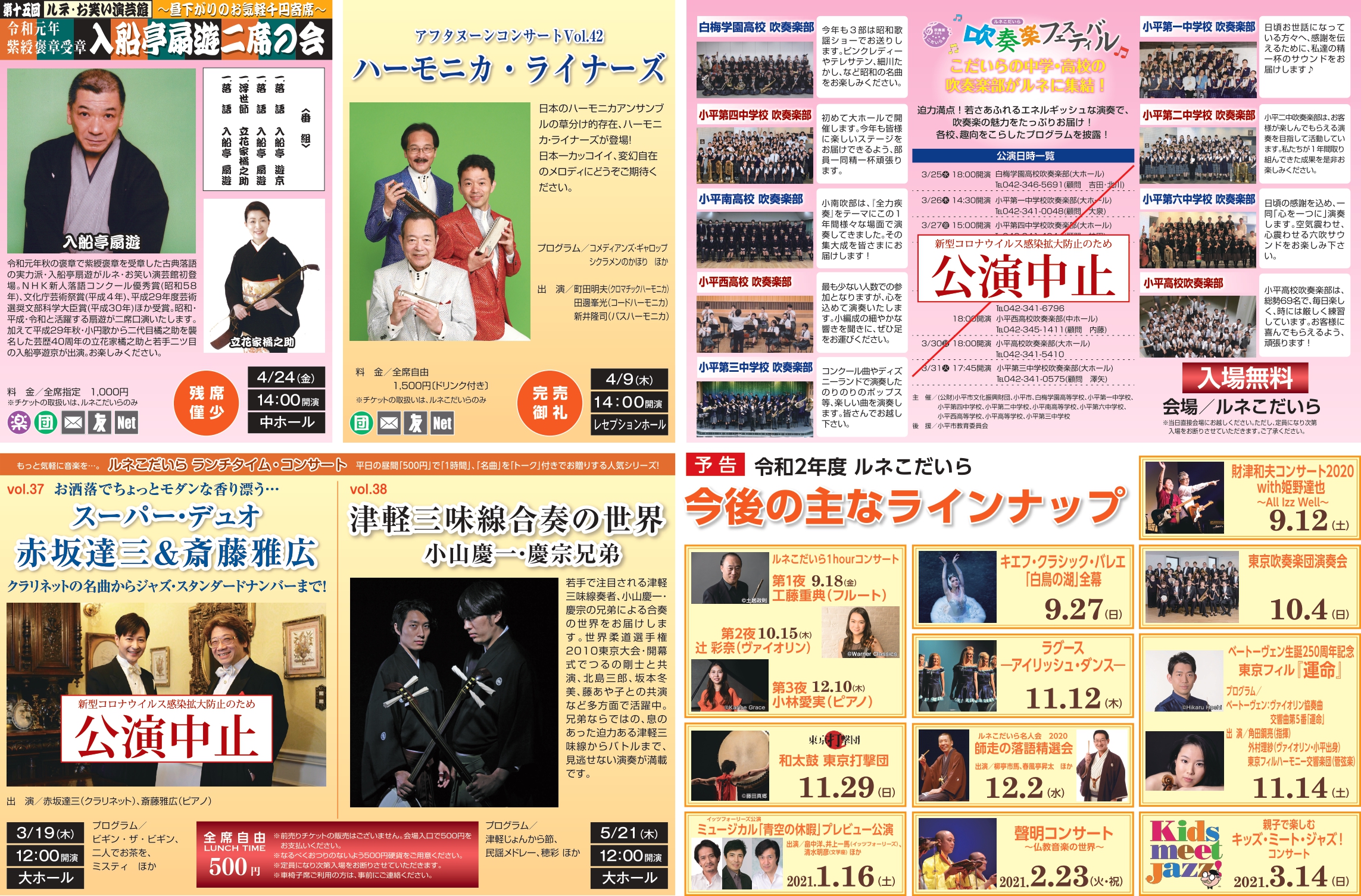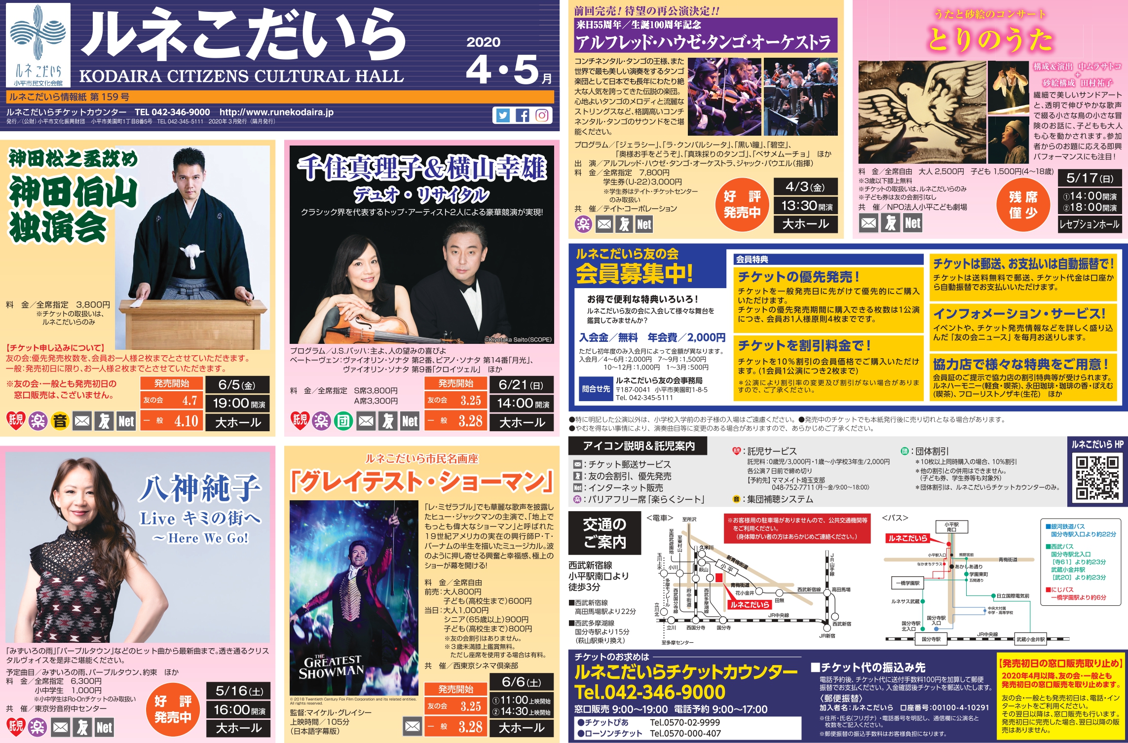 ルネこだいら情報紙 2020年4月・5月号を発行しました。3月15日の新聞各紙朝刊に折り込んで配布をしているほか、ルネこだいら館内、小平市役所、小平市立公民館・図書館などの小平市の施設などでも配布しています。