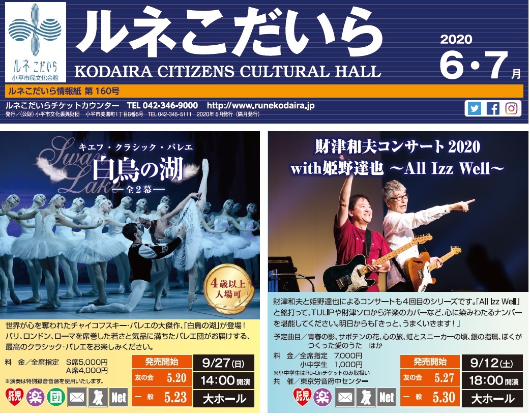 ルネこだいら情報紙 2020年6月・7月号を発行しました。5月17日の新聞各紙朝刊に折り込んで配布をしているほか、ルネこだいら館内、小平市役所、小平市立公民館・図書館などの小平市の施設などでも配布しています。