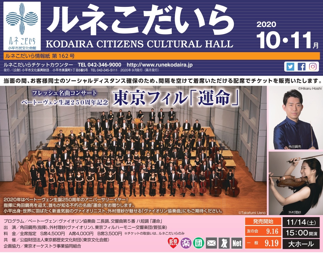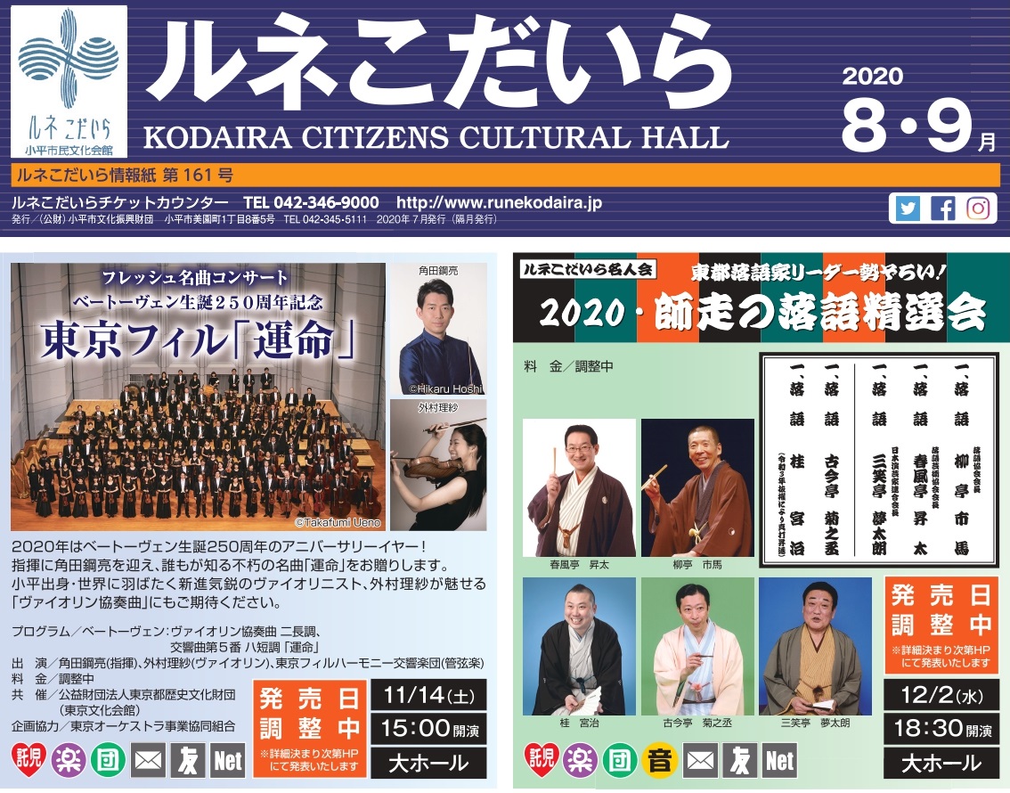 ルネこだいら情報紙2020年10月・11月号を発行しました。9月13日の新聞各紙朝刊に折り込んで配布をしているほか、ルネこだいら館内、小平市役所、小平市立公民館・図書館などの小平市の施設などでも配布しています。