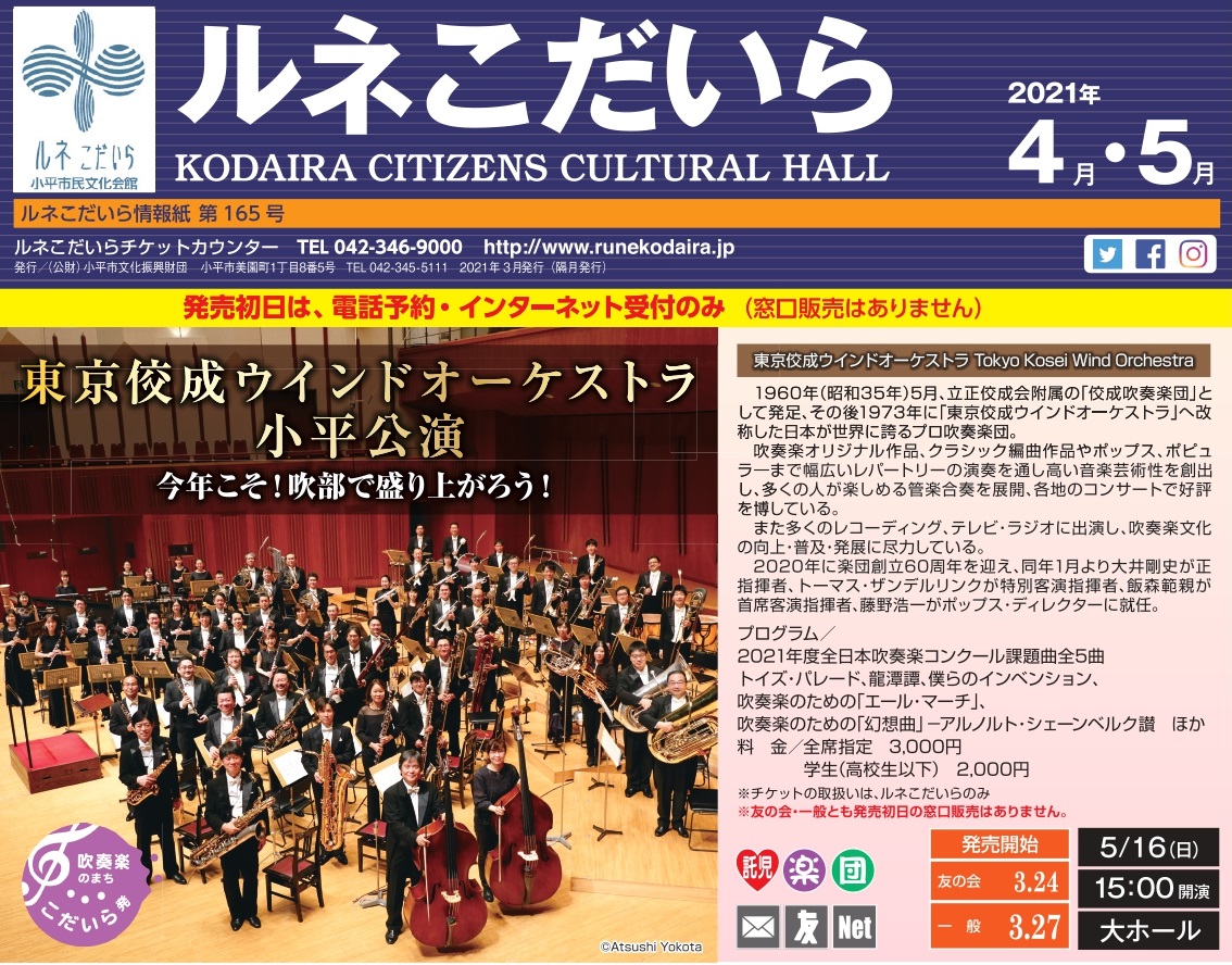 ルネこだいら情報紙2021年4月・5月号を発行しました。3月14日の新聞各紙朝刊に折り込んで配布をしているほか、ルネこだいら館内、小平市役所、小平市立公民館・図書館などの小平市の施設などでも配布しています。
