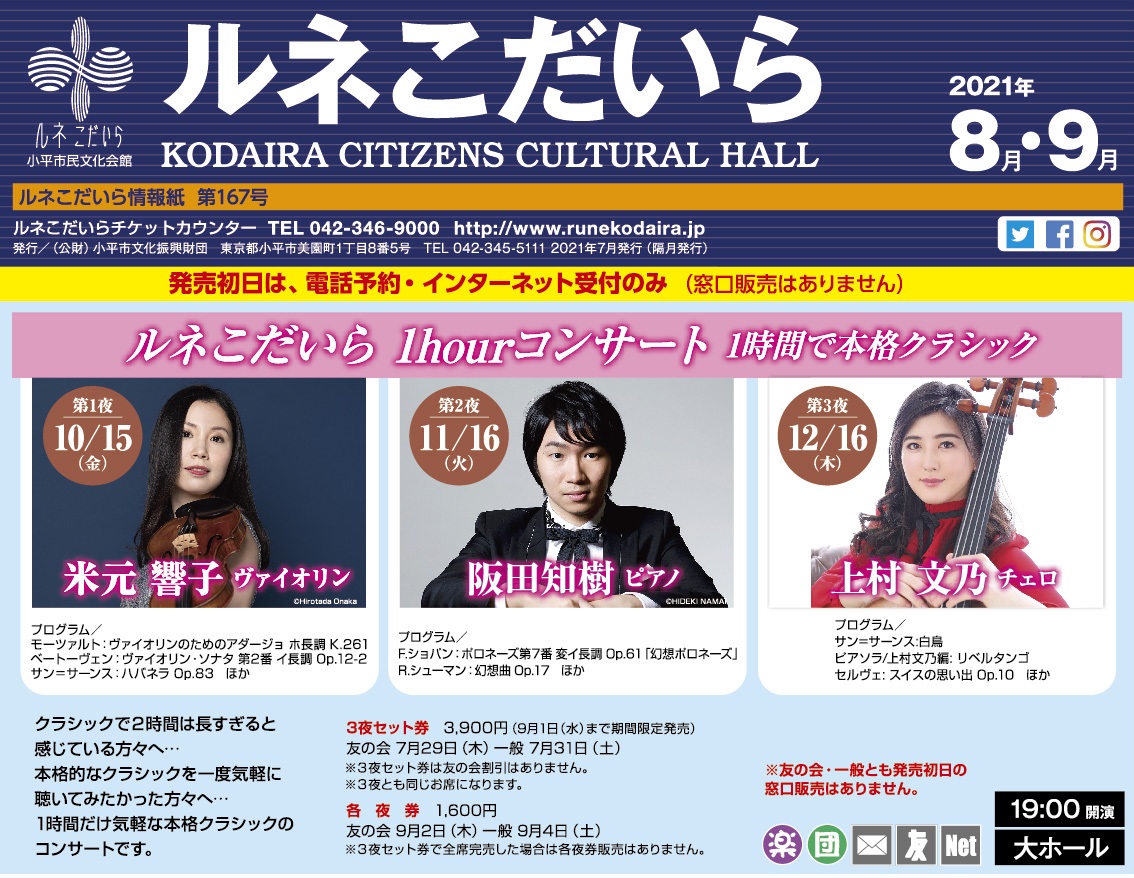 ルネこだいら情報紙2021年8月・9月号を発行しました。7月11日の新聞各紙朝刊に折り込んで配布をしているほか、ルネこだいら館内、小平市役所、小平市立公民館・図書館などの小平市の施設などでも配布しています。