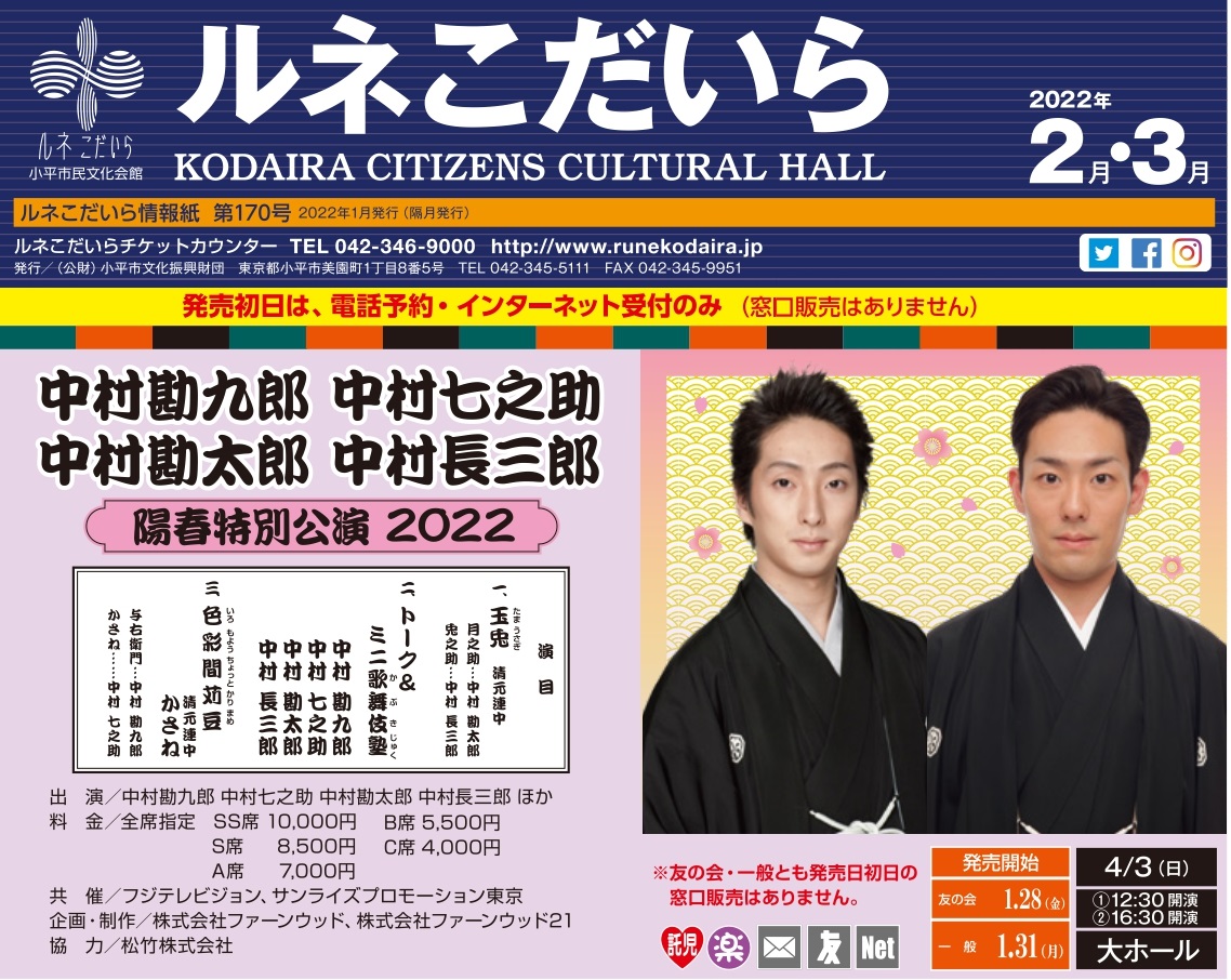 ルネこだいら情報紙2022年2月・3月号を発行しました。1月16日の新聞各紙朝刊に折り込んで配布をしているほか、ルネこだいら館内、小平市役所、小平市立公民館・図書館などの小平市の施設などでも配布しています。