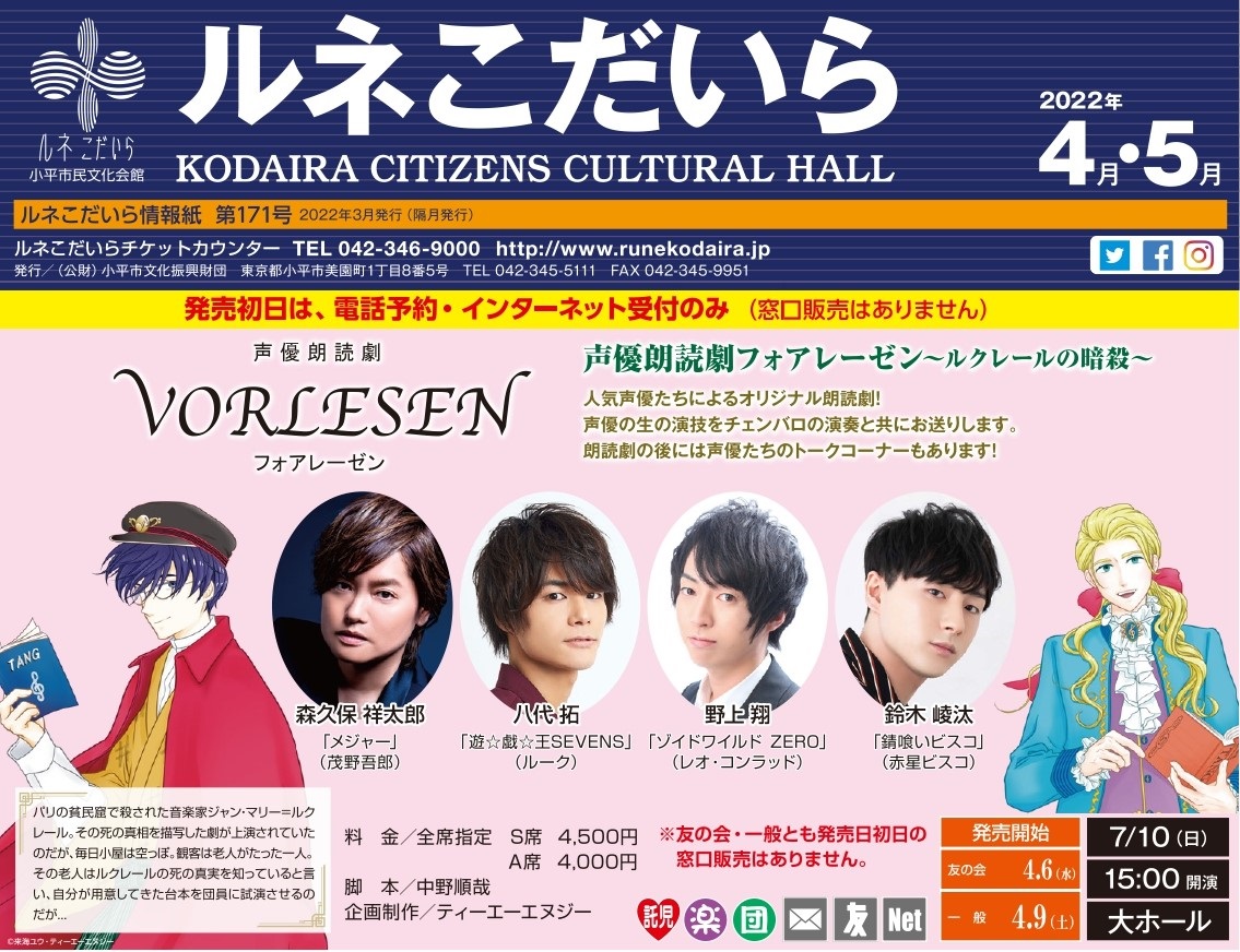 ルネこだいら情報紙2022年4月・5月号を発行しました。3月13日の新聞各紙朝刊に折り込んで配布をしているほか、ルネこだいら館内、小平市役所、小平市立公民館・図書館などの小平市の施設などでも配布しています。