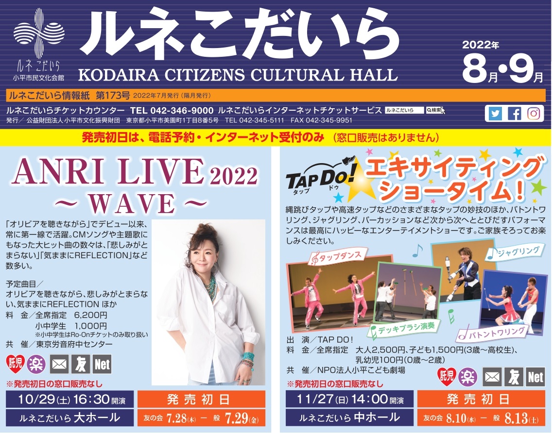 ルネこだいら情報紙2022年8月・9月号を発行しました。7月17日の新聞各紙朝刊に折り込んで配布をしているほか、ルネこだいら館内、小平市役所、小平市立公民館・図書館などの小平市の施設などでも配布しています。