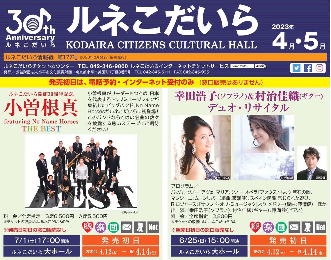 ルネこだいら情報紙 2023年4月・5月号を発行しました。3月12日の新聞各紙朝刊に折り込んで配布をしているほか、ルネこだいら館内、小平市役所、小平市立公民館・図書館などの小平市の施設などでも配布しています。