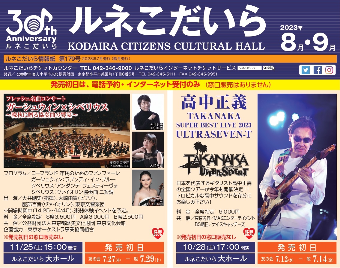 ルネこだいら情報紙 2023年8月・9月号を発行しました。7月9日の新聞各紙朝刊に折り込んで配布をしているほか、ルネこだいら館内、小平市役所、小平市立公民館・図書館などの小平市の施設などでも配布しています。