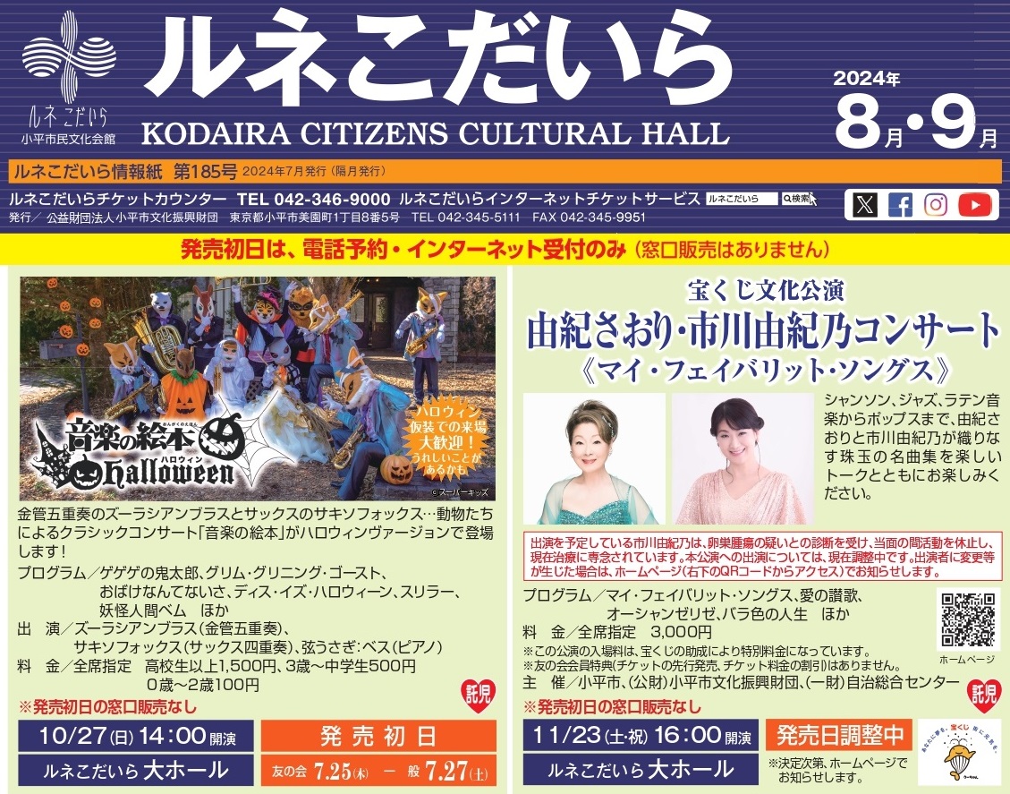 ルネこだいら情報紙 2024年10月・11月号を発行しました。9月15日の新聞各紙朝刊に折り込んで配布をしているほか、ルネこだいら館内、小平市役所、小平市立公民館・図書館などの小平市の施設などでも配布しています。