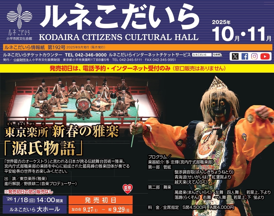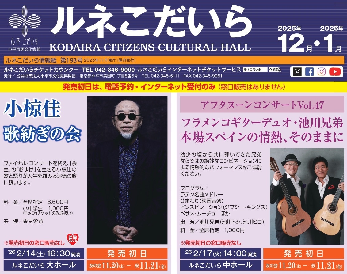 ルネこだいら情報紙 2025年12月・2026年1月号を発行しました。11月9日の新聞各紙朝刊に折り込んで配布をしているほか、ルネこだいら館内、小平市役所、小平市立公民館・図書館などの小平市の施設などでも配布しています。