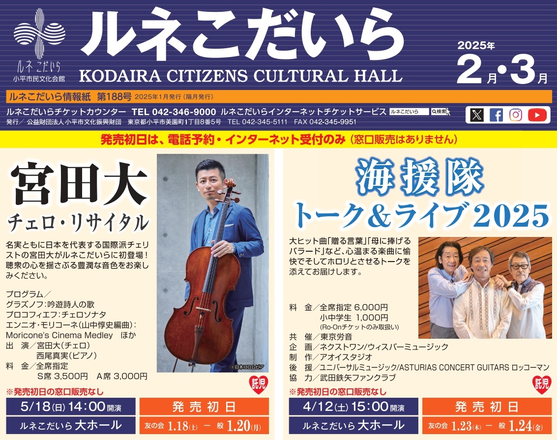 ルネこだいら情報紙 2025年2月・3月号を発行しました。1月12日の新聞各紙朝刊に折り込んで配布をしているほか、ルネこだいら館内、小平市役所、小平市立公民館・図書館などの小平市の施設などでも配布しています。