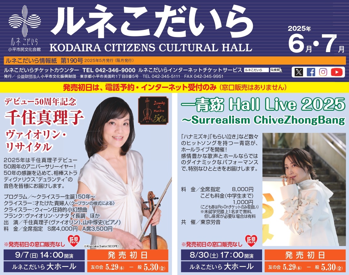 ルネこだいら情報紙 2025年6月・7月号を発行しました。5月11日の新聞各紙朝刊に折り込んで配布をしているほか、ルネこだいら館内、小平市役所、小平市立公民館・図書館などの小平市の施設などでも配布しています。