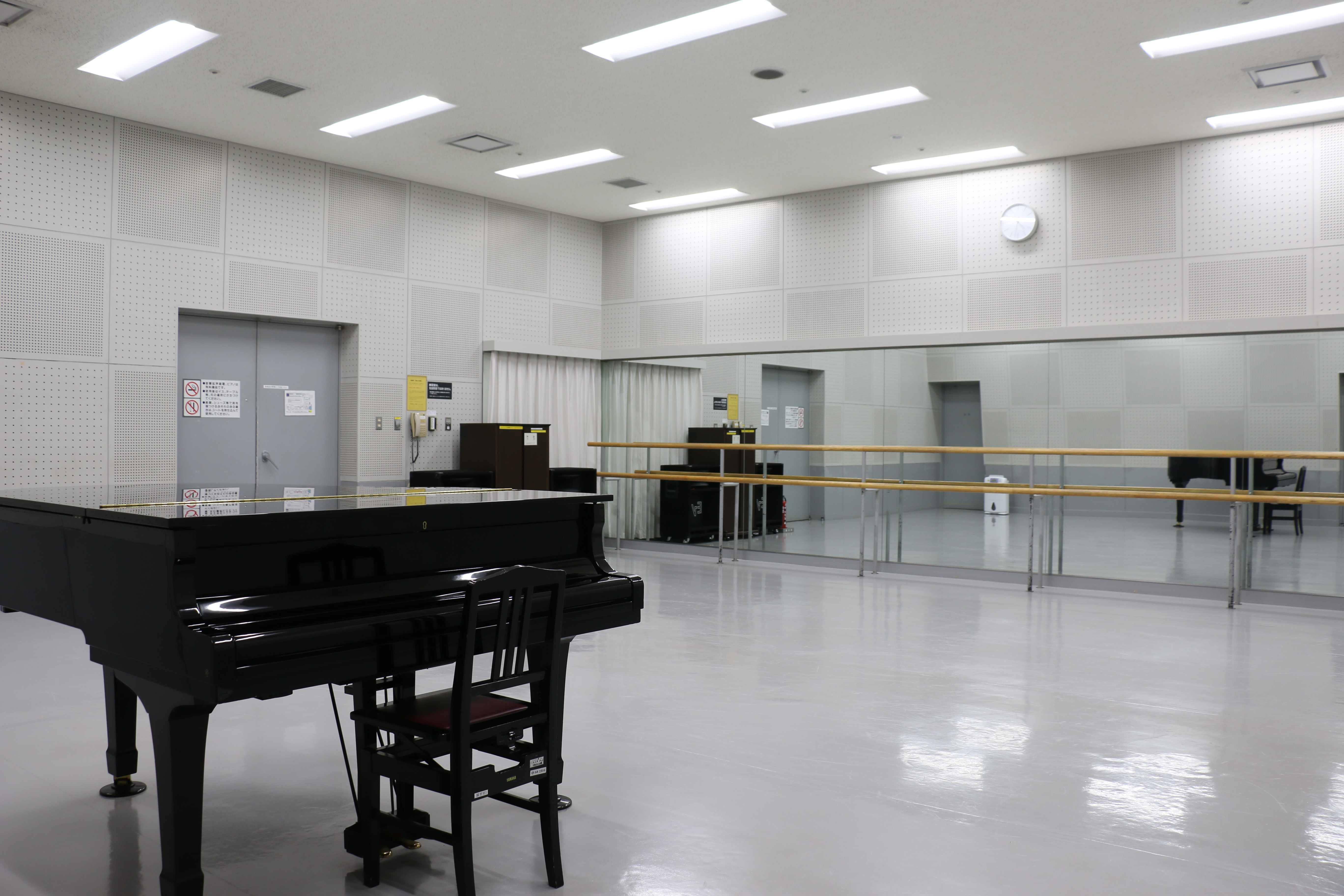 すべての練習室:床はリノリューム、壁に鏡があります、フリーWi-Fi(フリーWi-Fiの詳細は、ルネこだいら館内設置の施設利用者様向けインターネット(Wi-Fi・無線)回線のページをご覧ください)、練習室1のみ:グランドピアノ設置