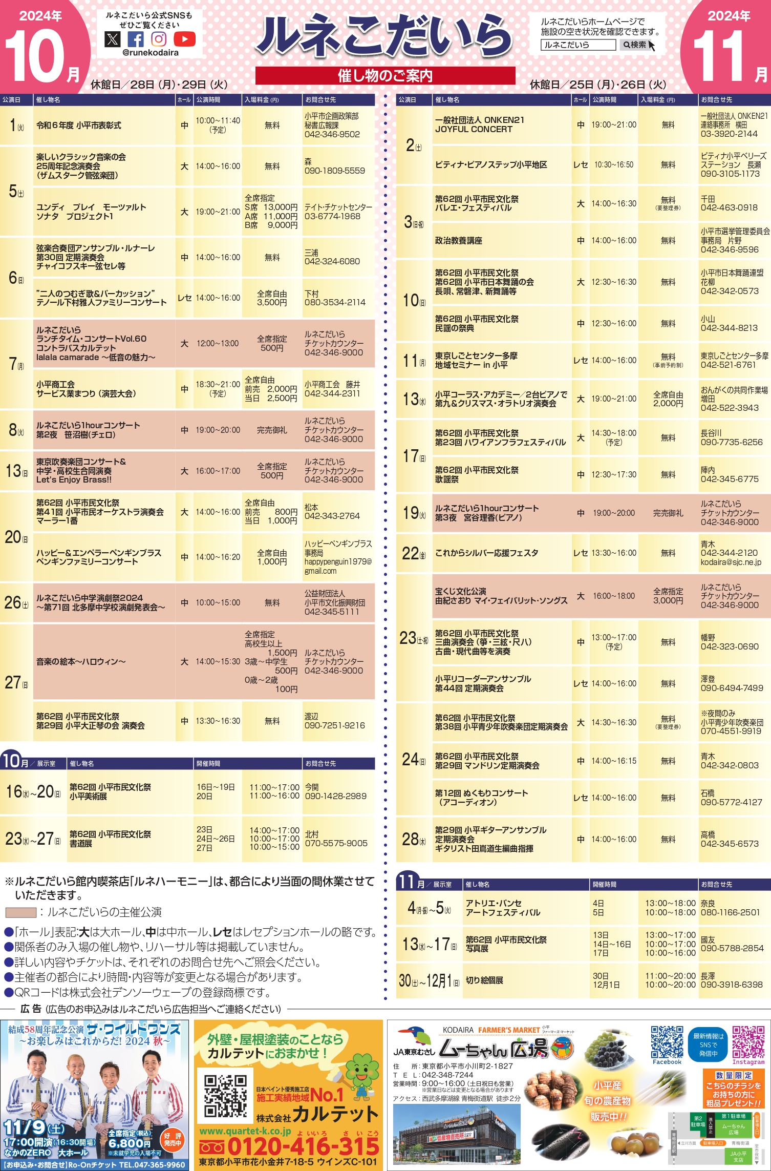 その他、チケット販売中の公演情報などは、ルネこだいら情報紙をご覧ください。