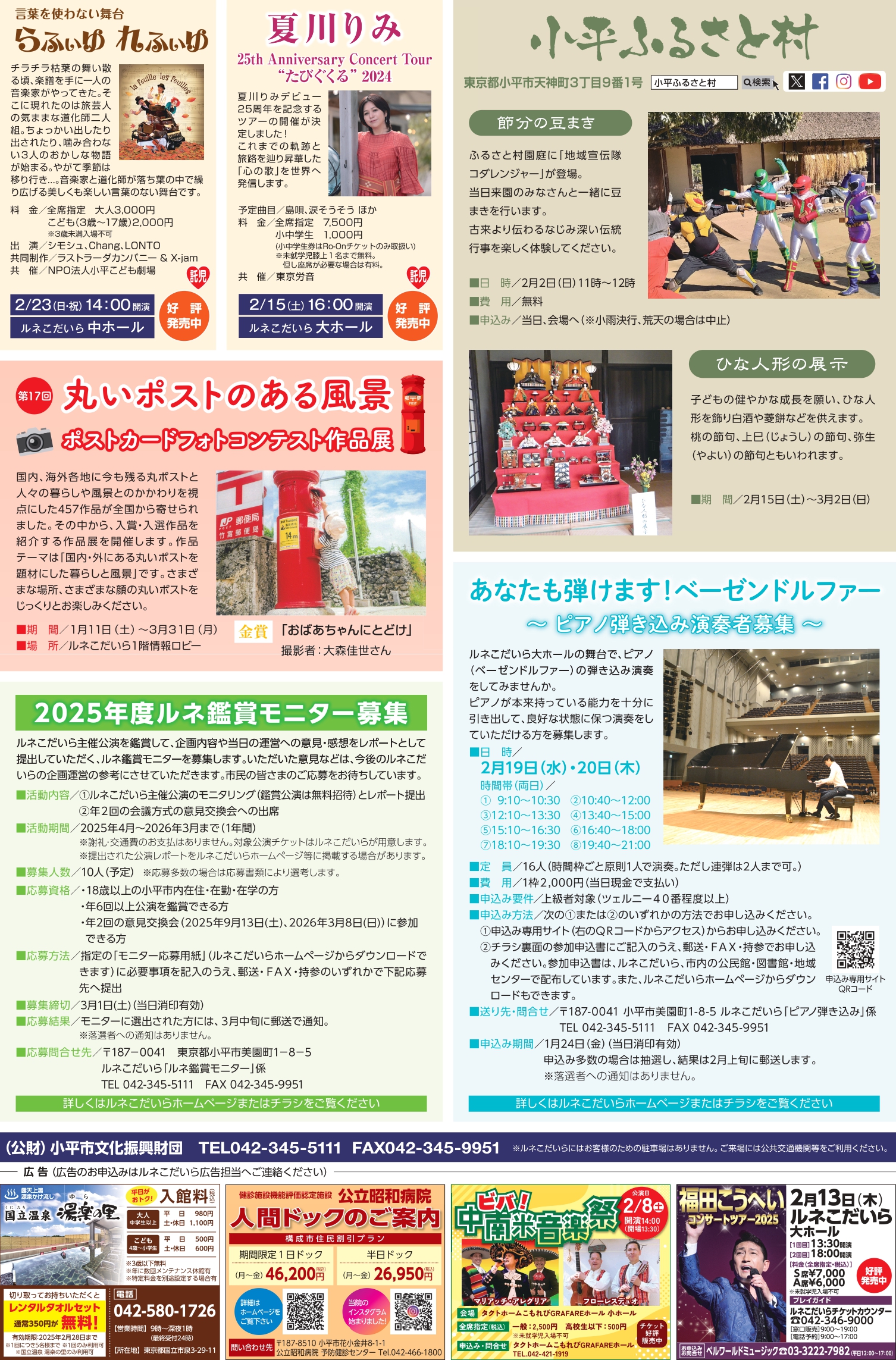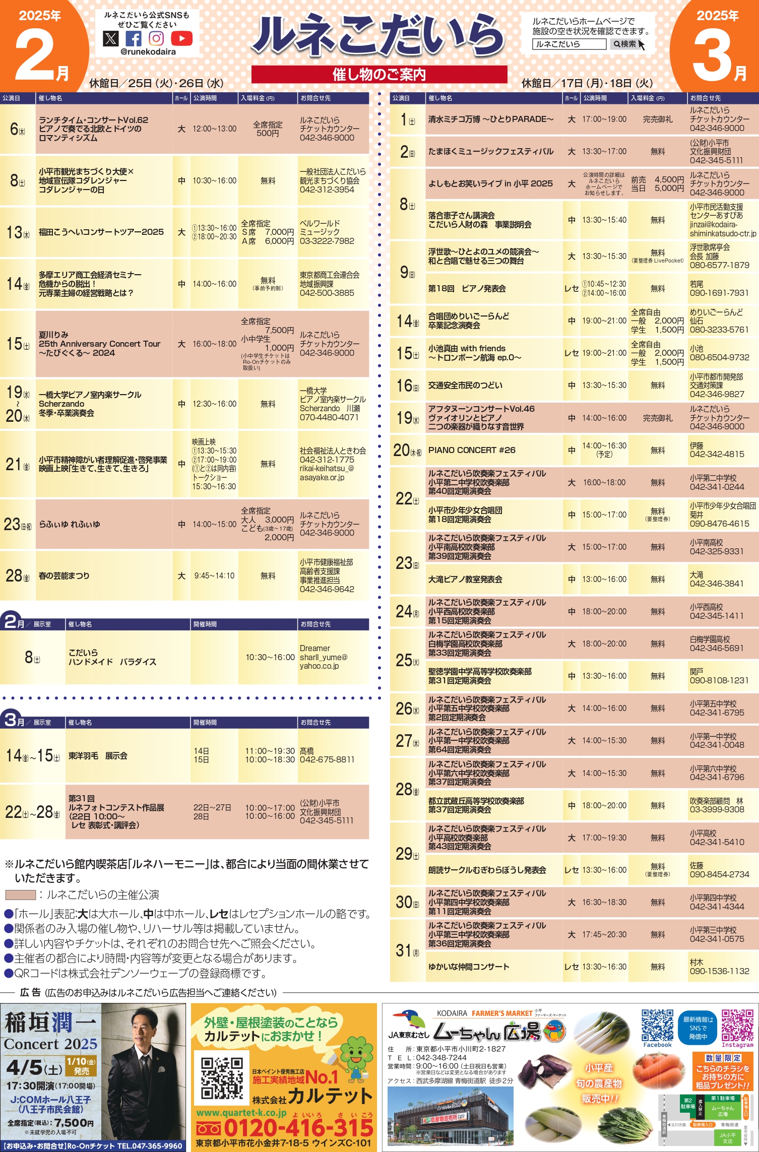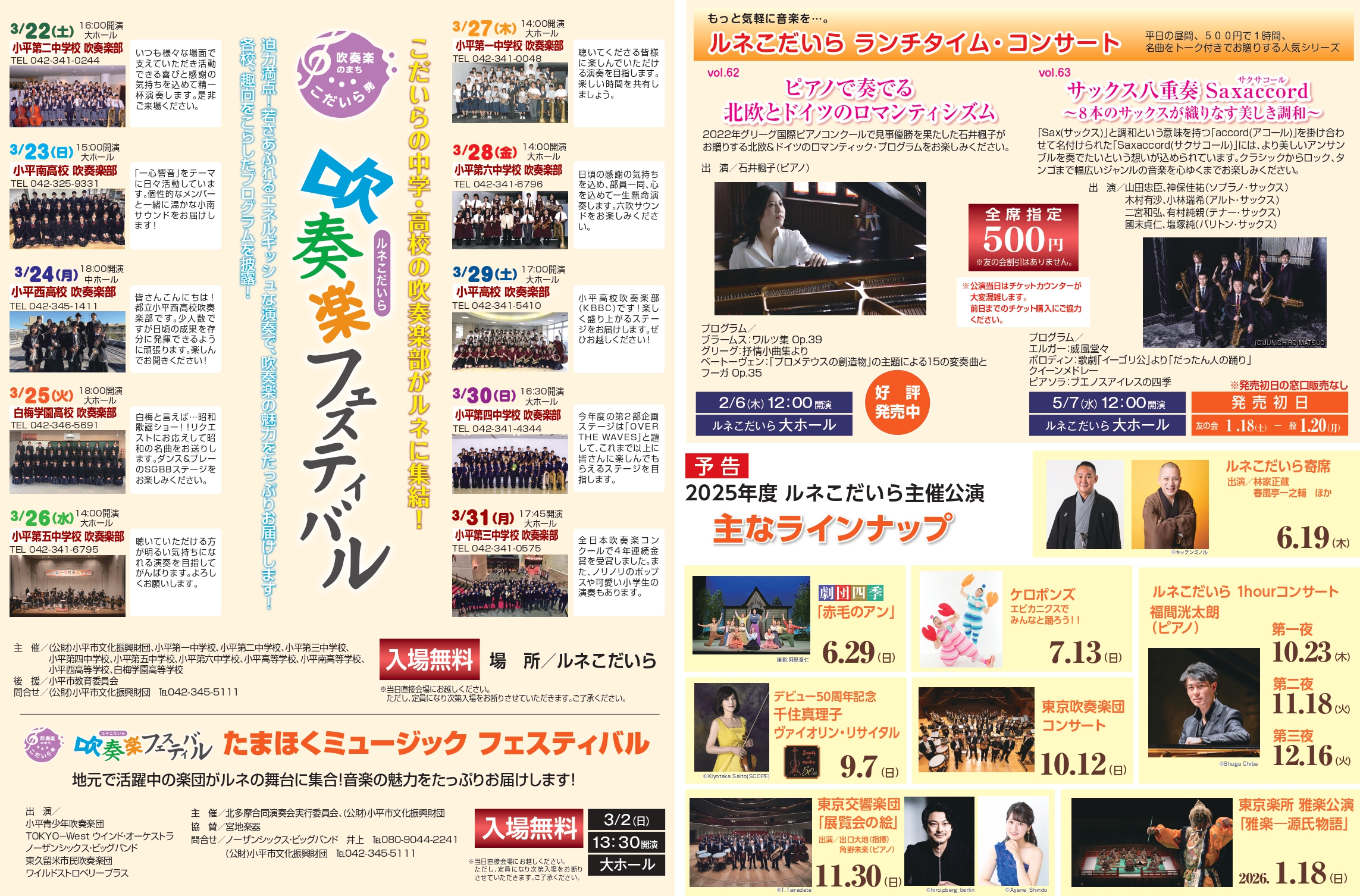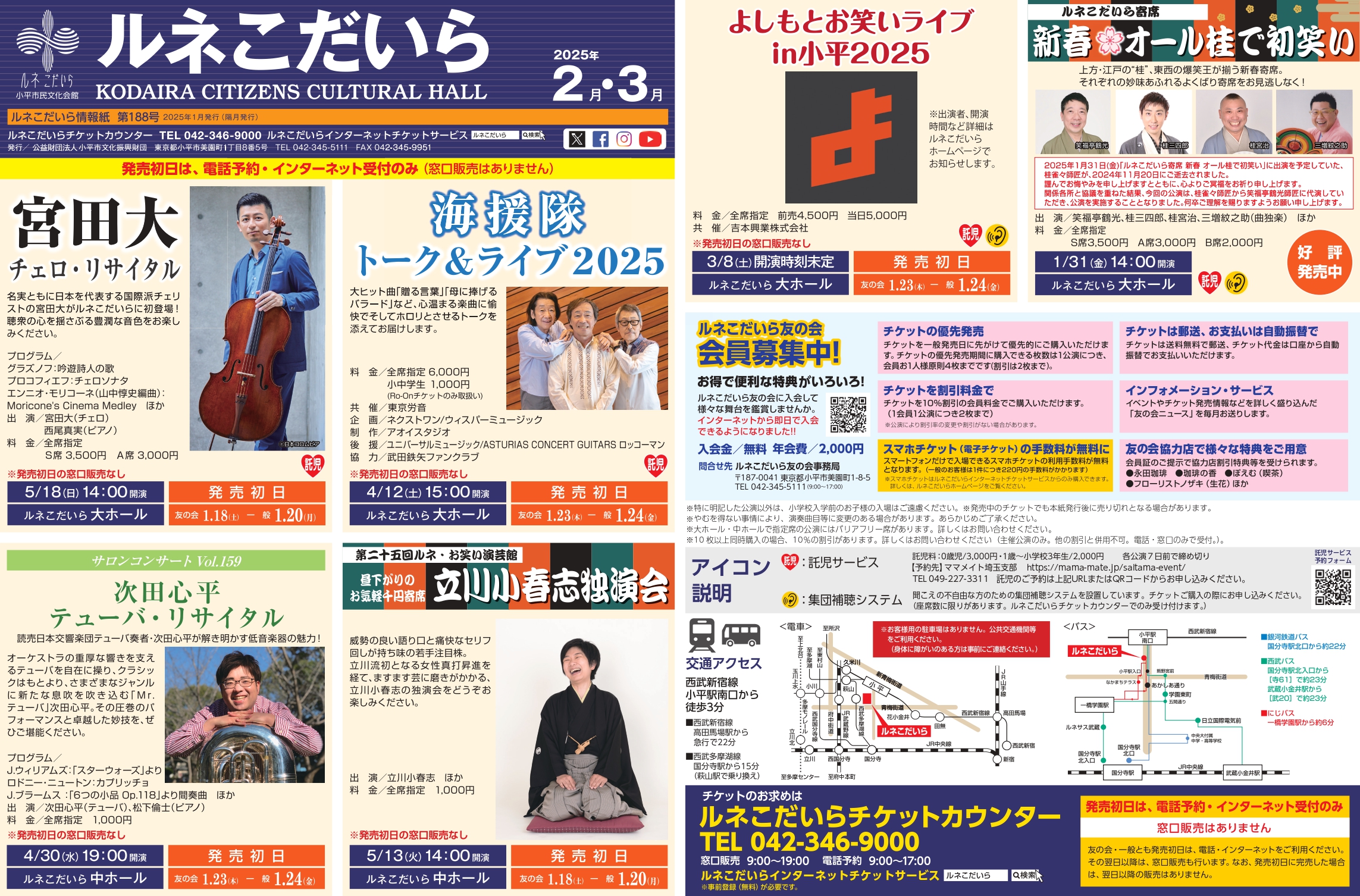その他、チケット販売中の公演情報などは、ルネこだいら情報紙をご覧ください。