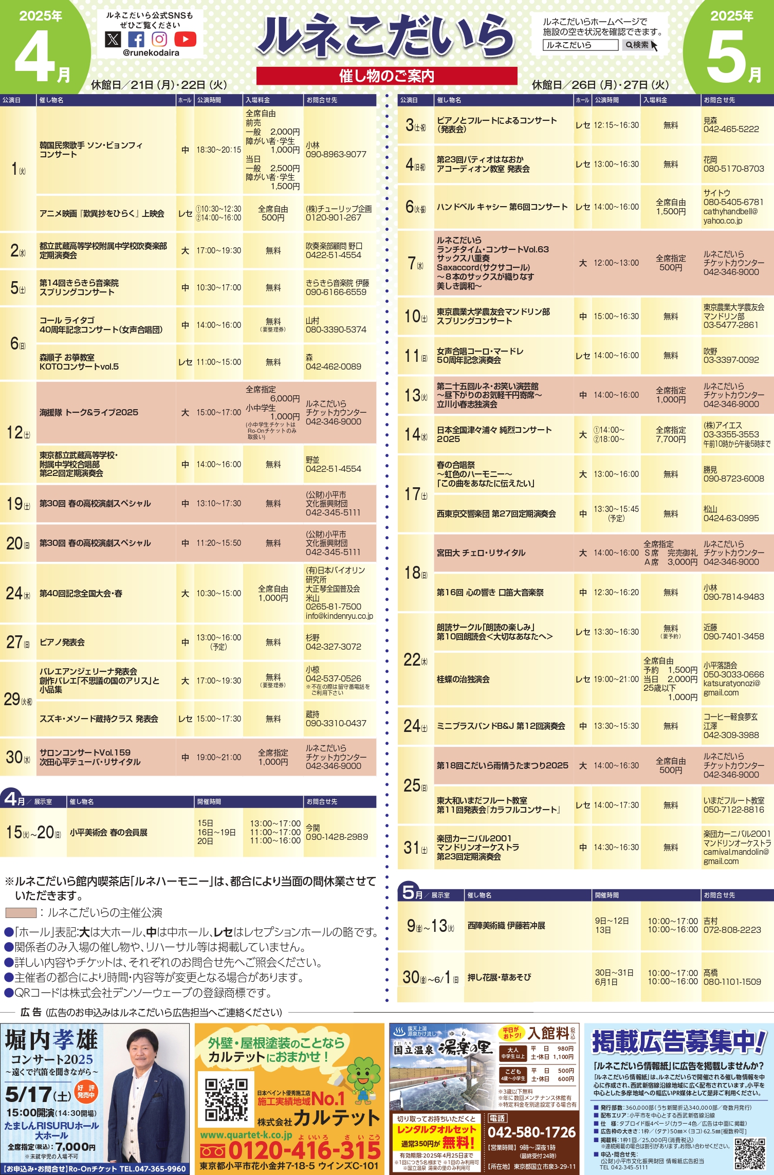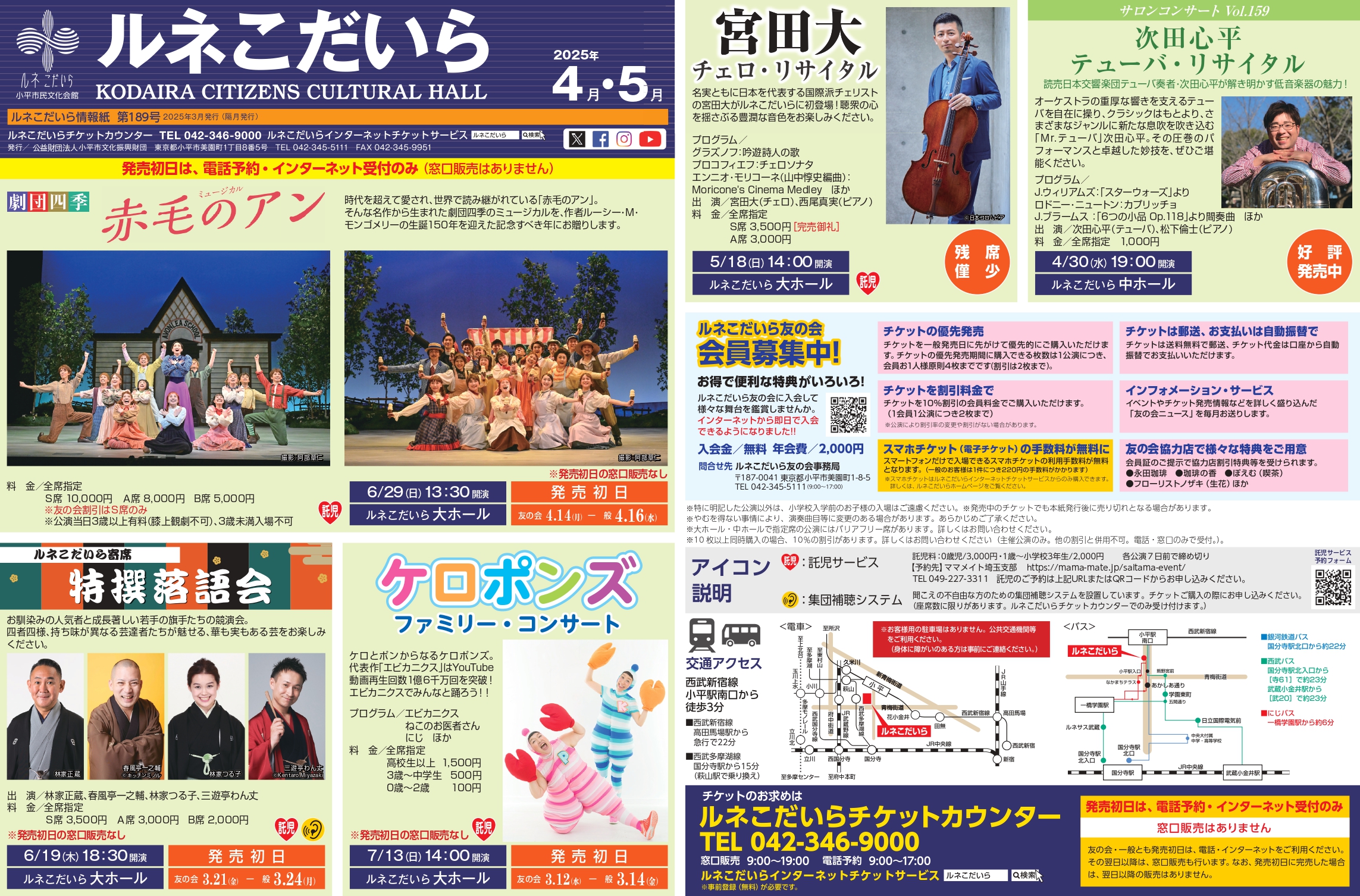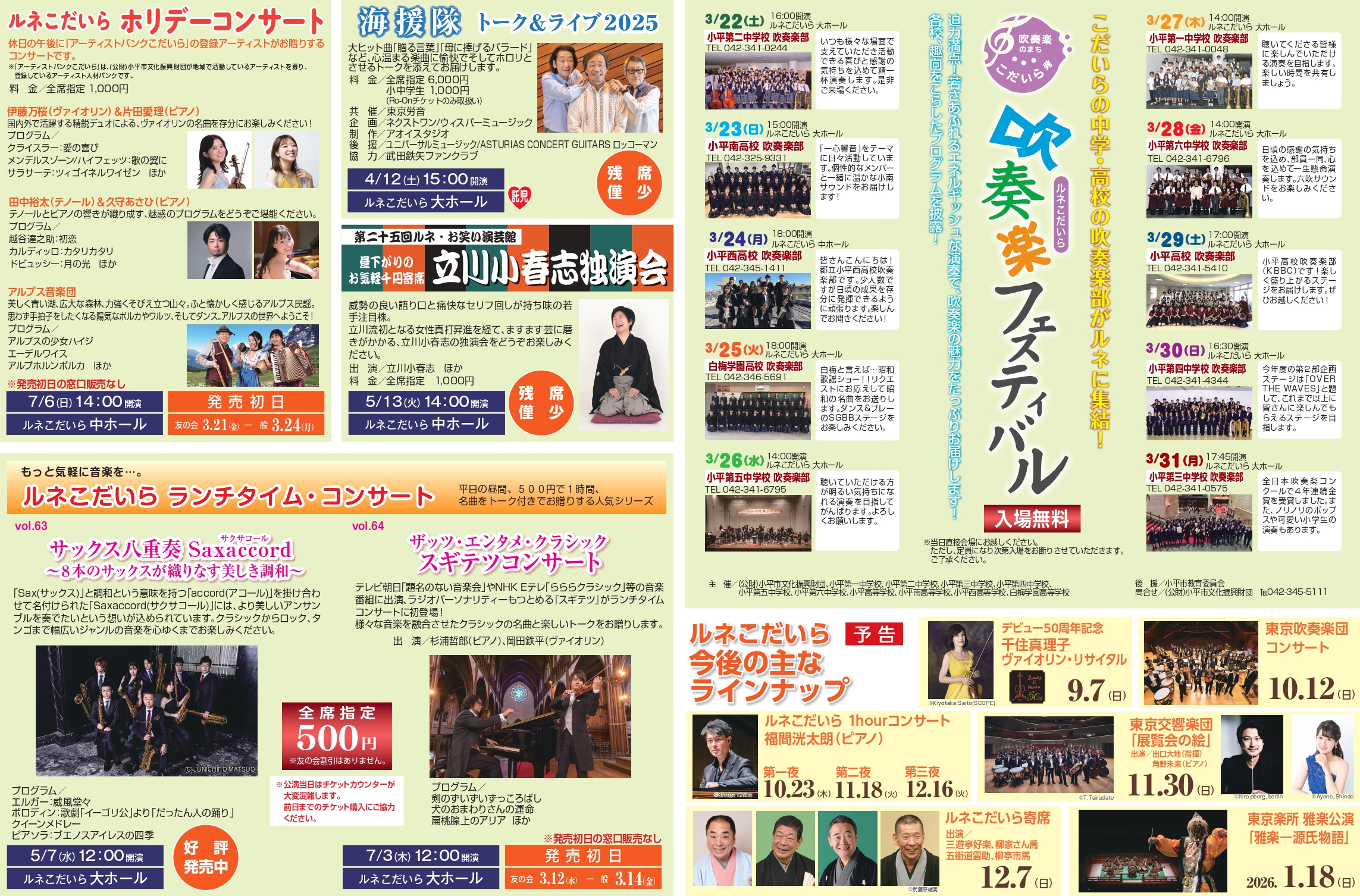 その他、チケット販売中の公演情報などは、ルネこだいら情報紙をご覧ください。