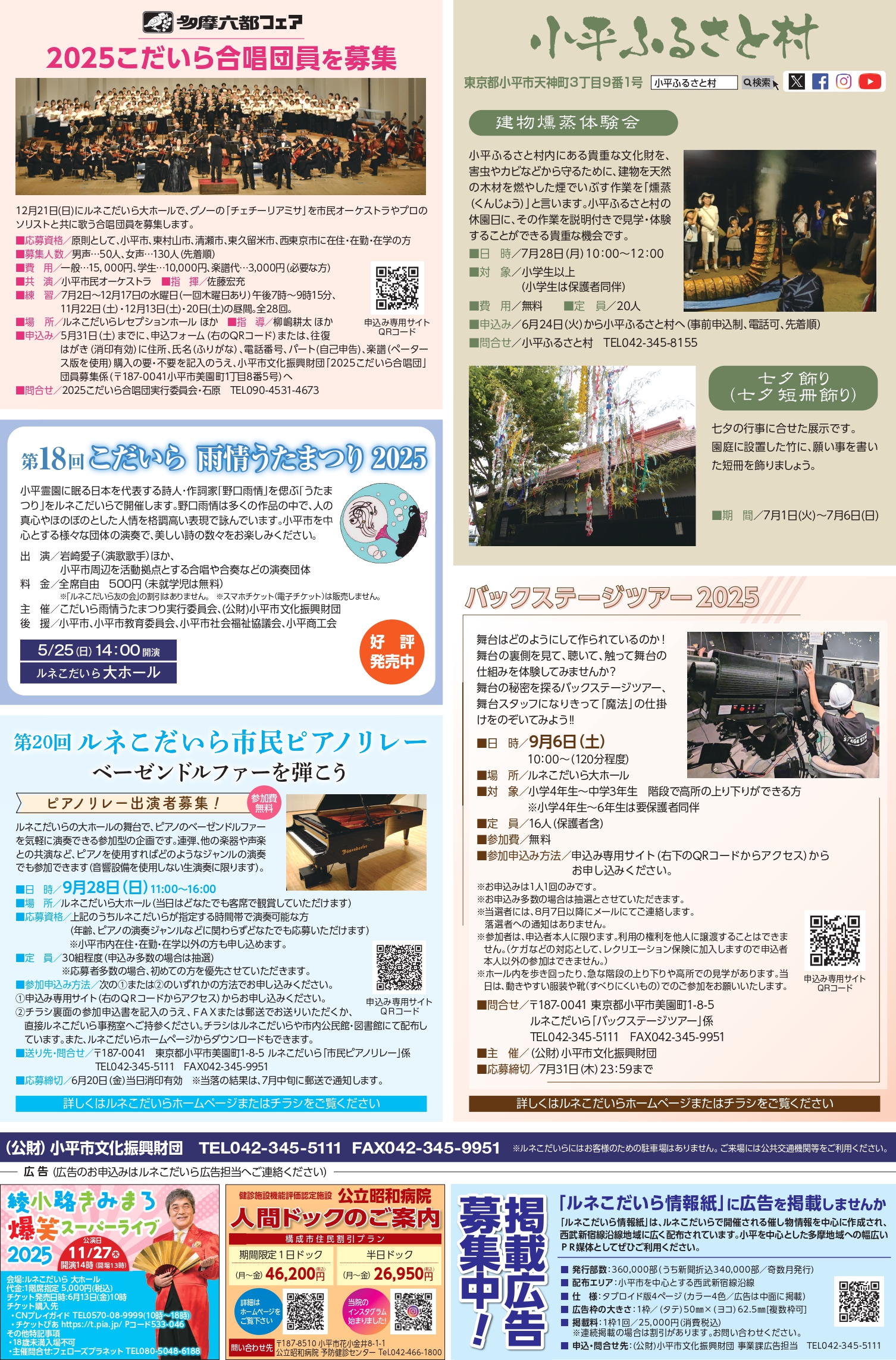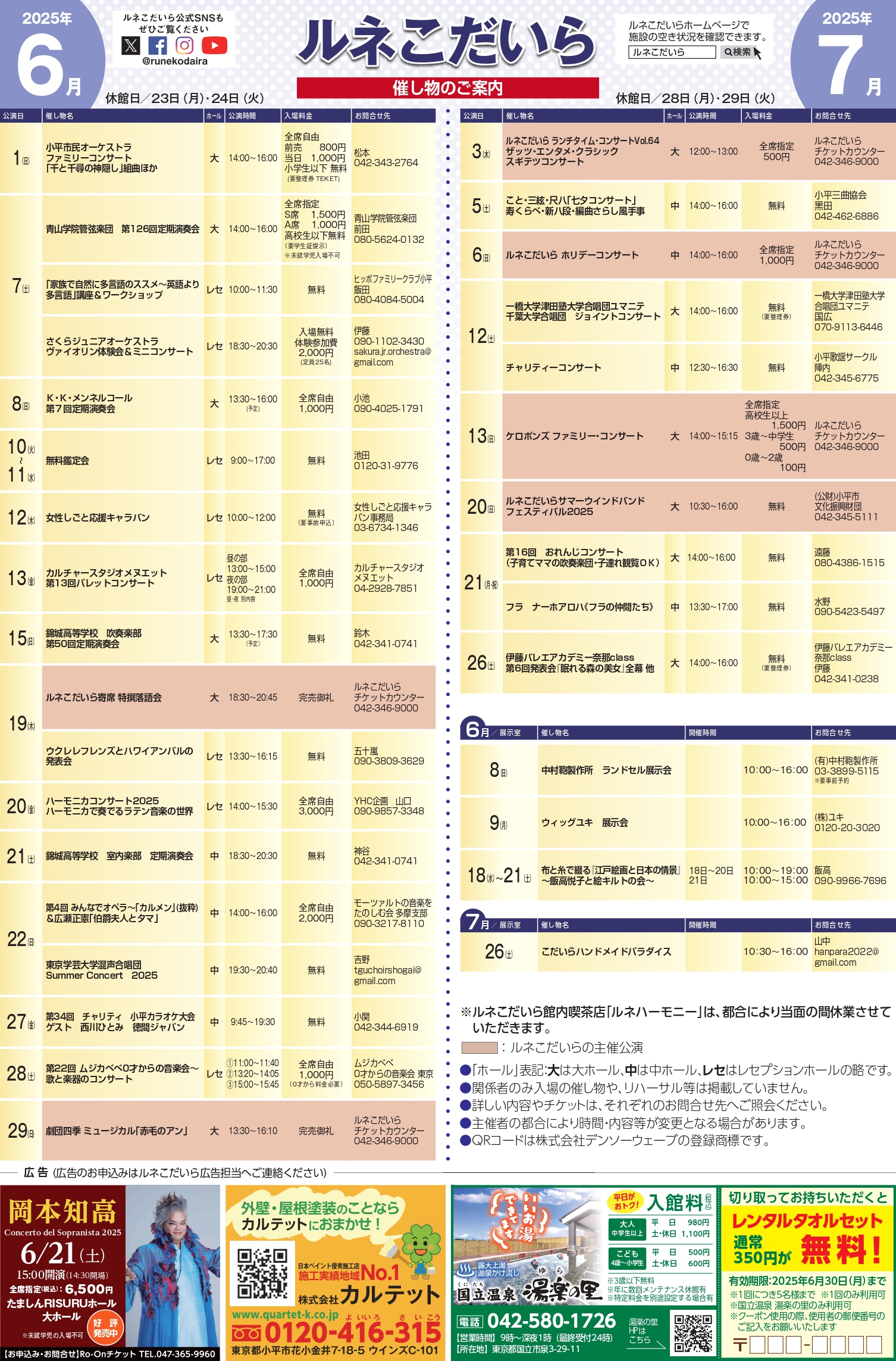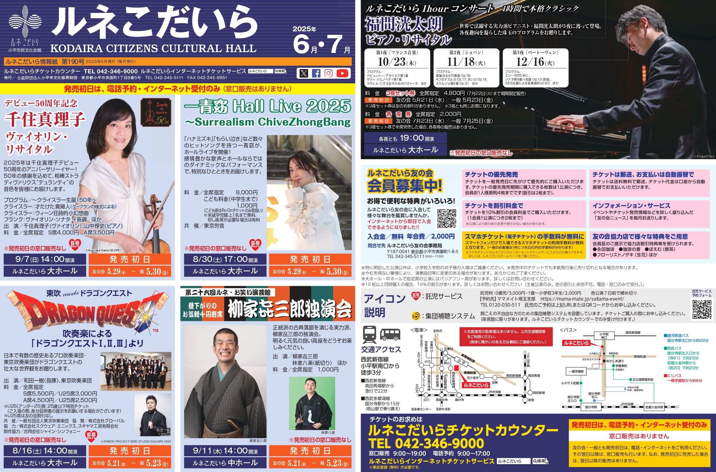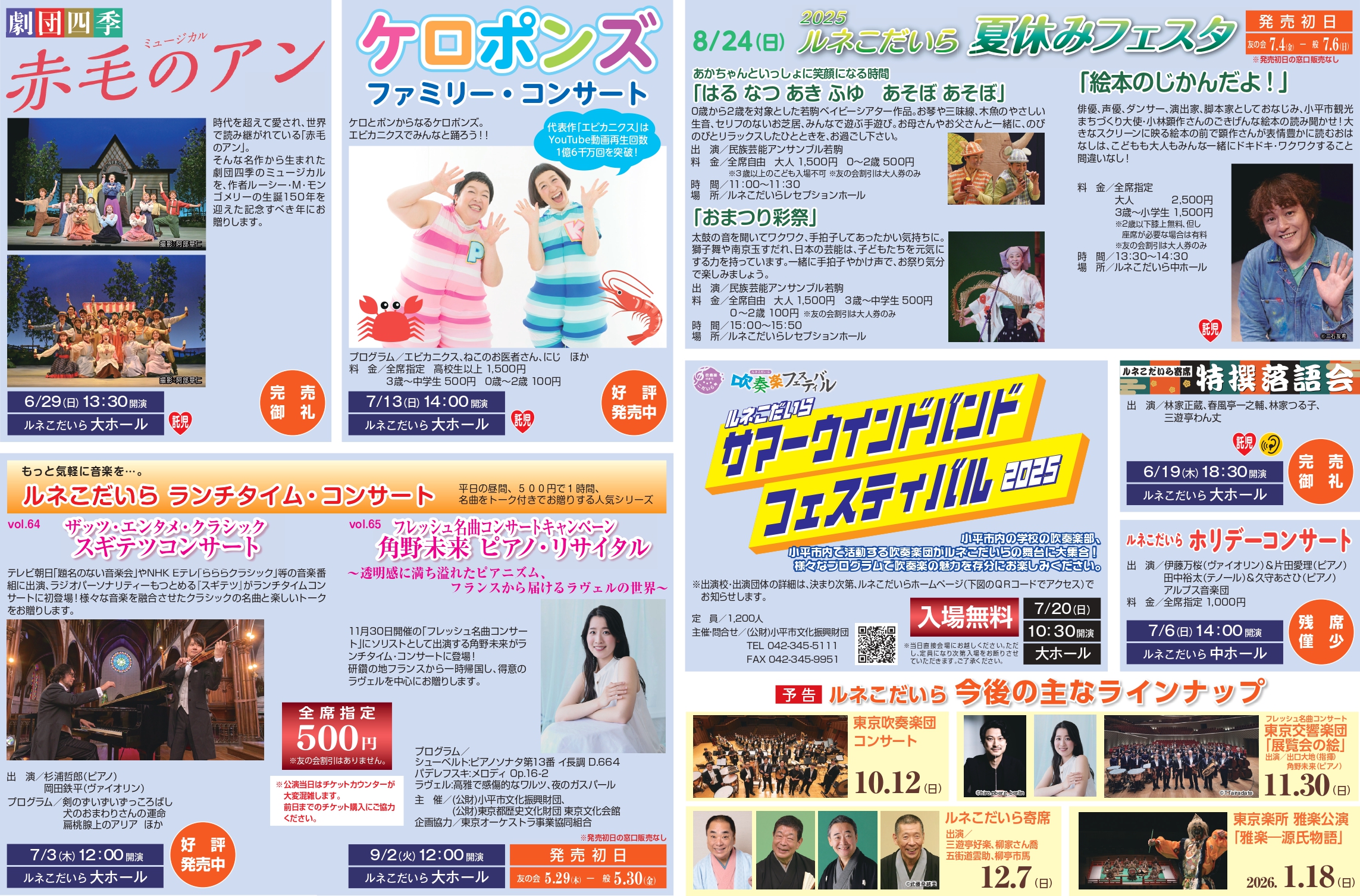 その他、チケット販売中の公演情報などは、ルネこだいら情報紙をご覧ください。