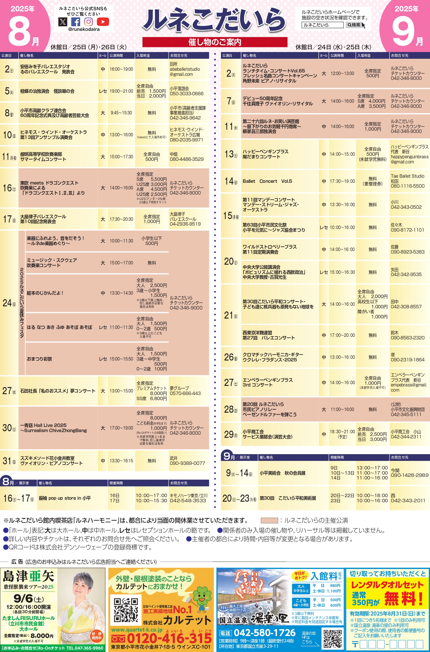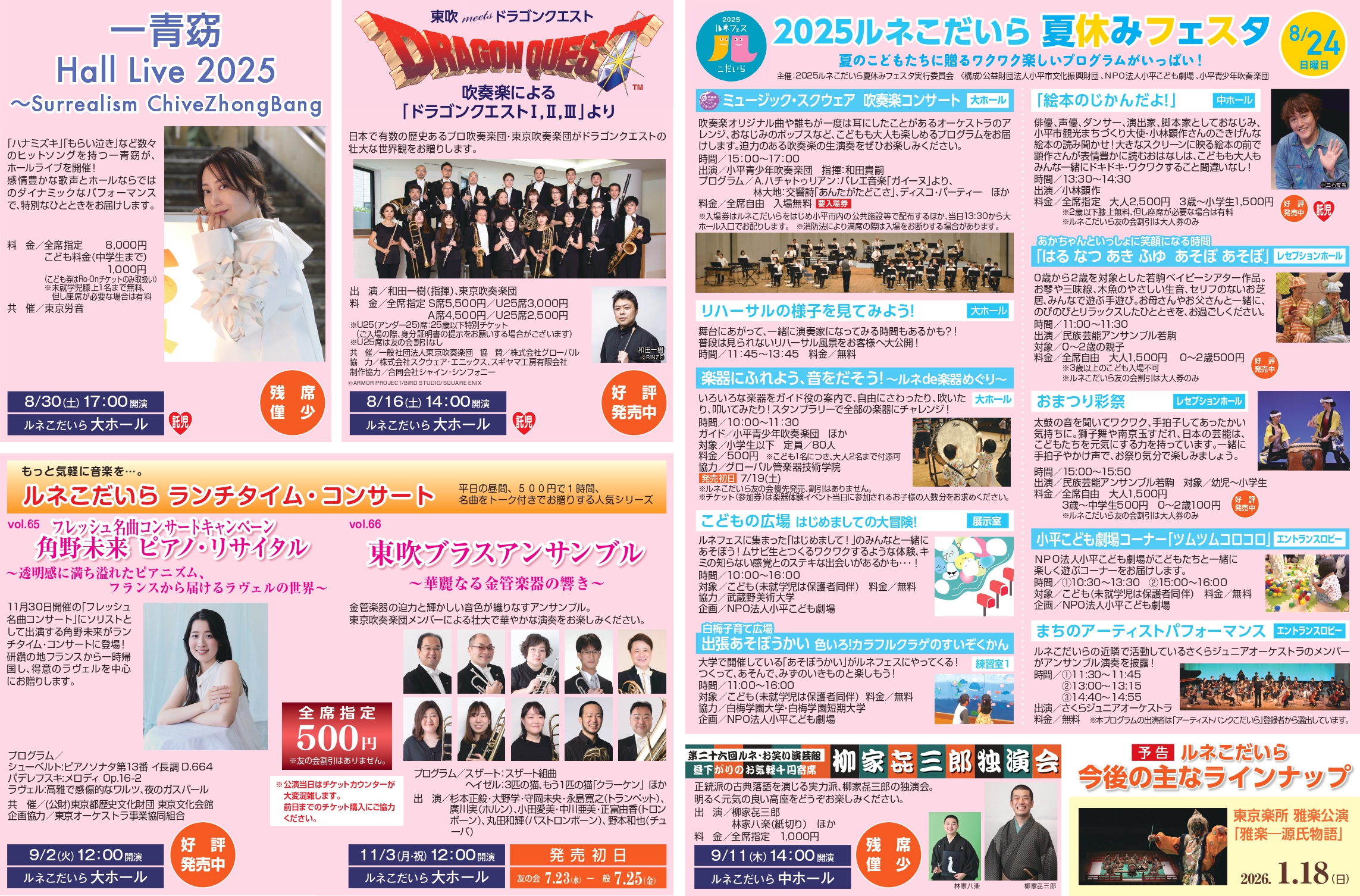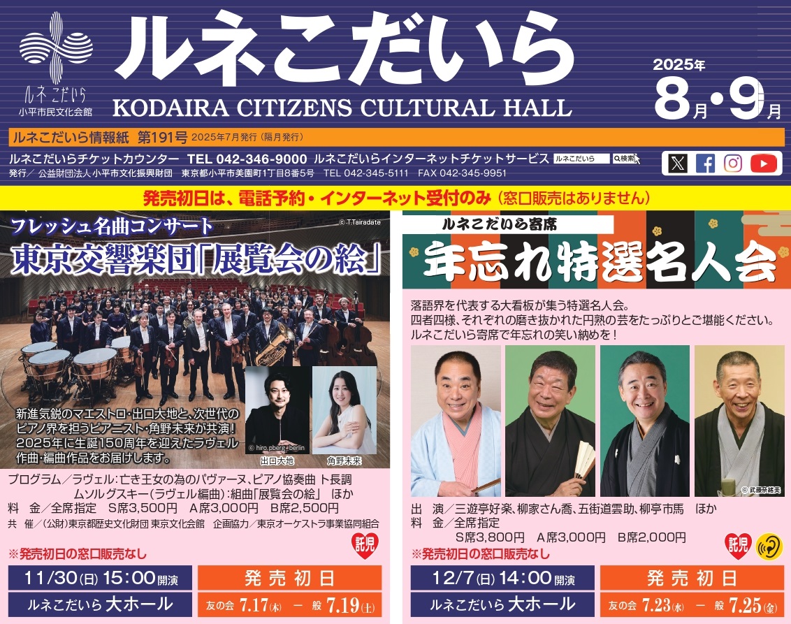 その他、チケット販売中の公演情報などは、ルネこだいら情報紙をご覧ください。