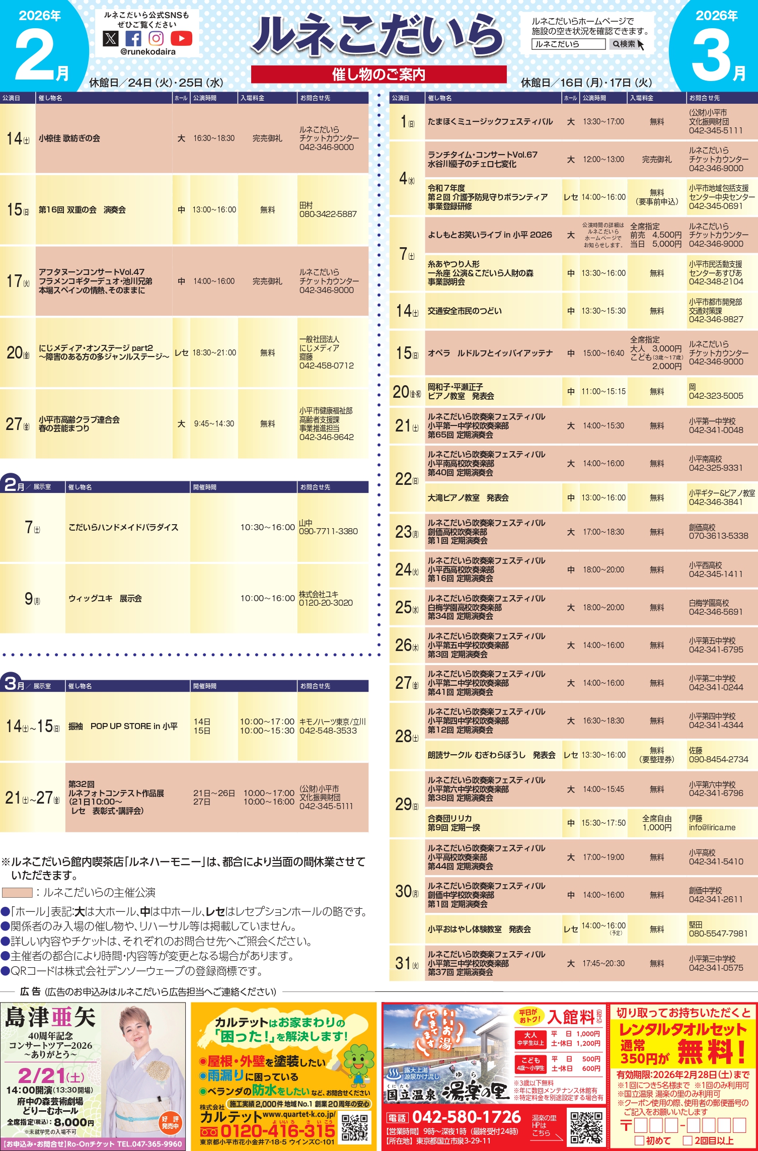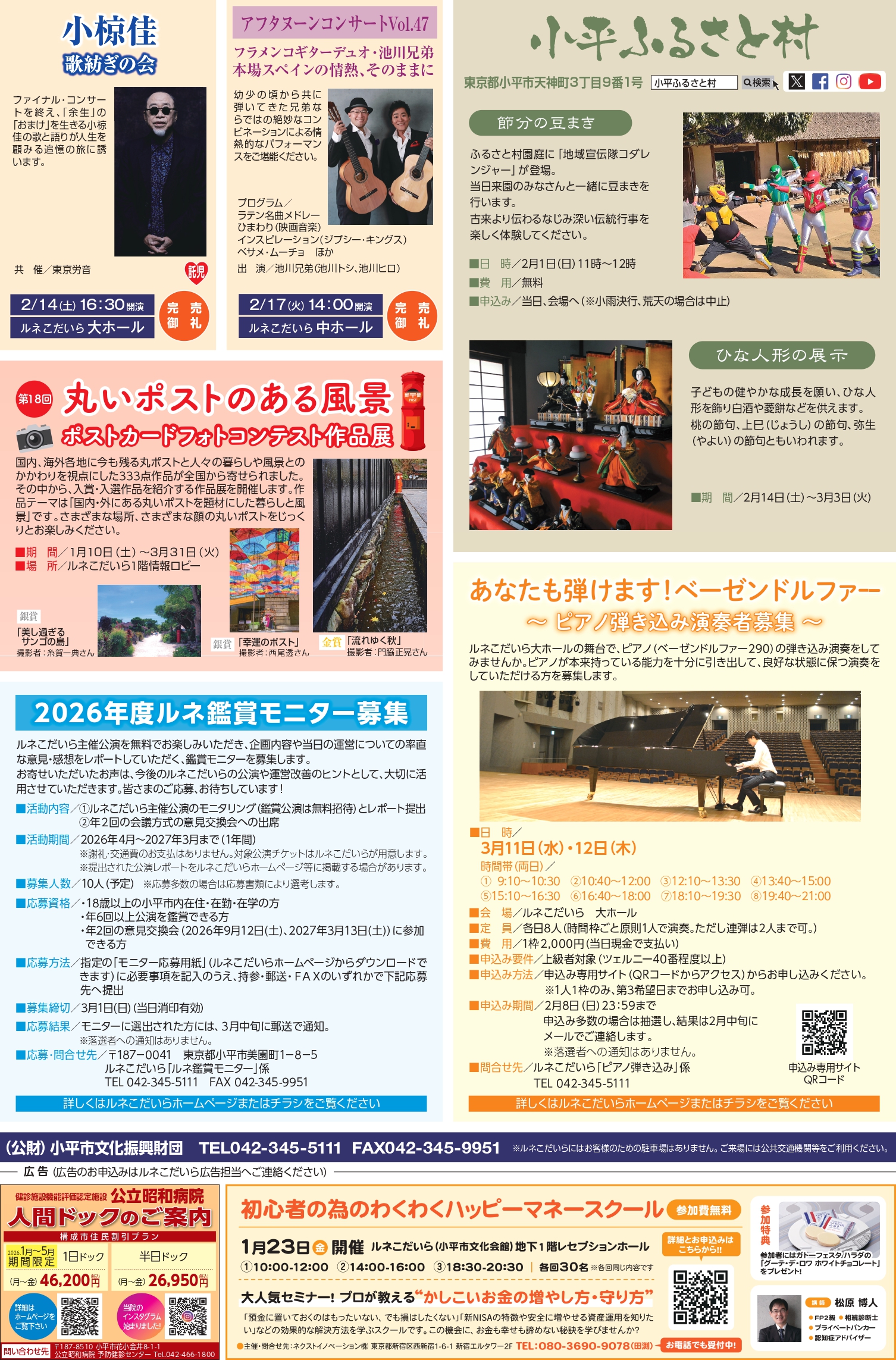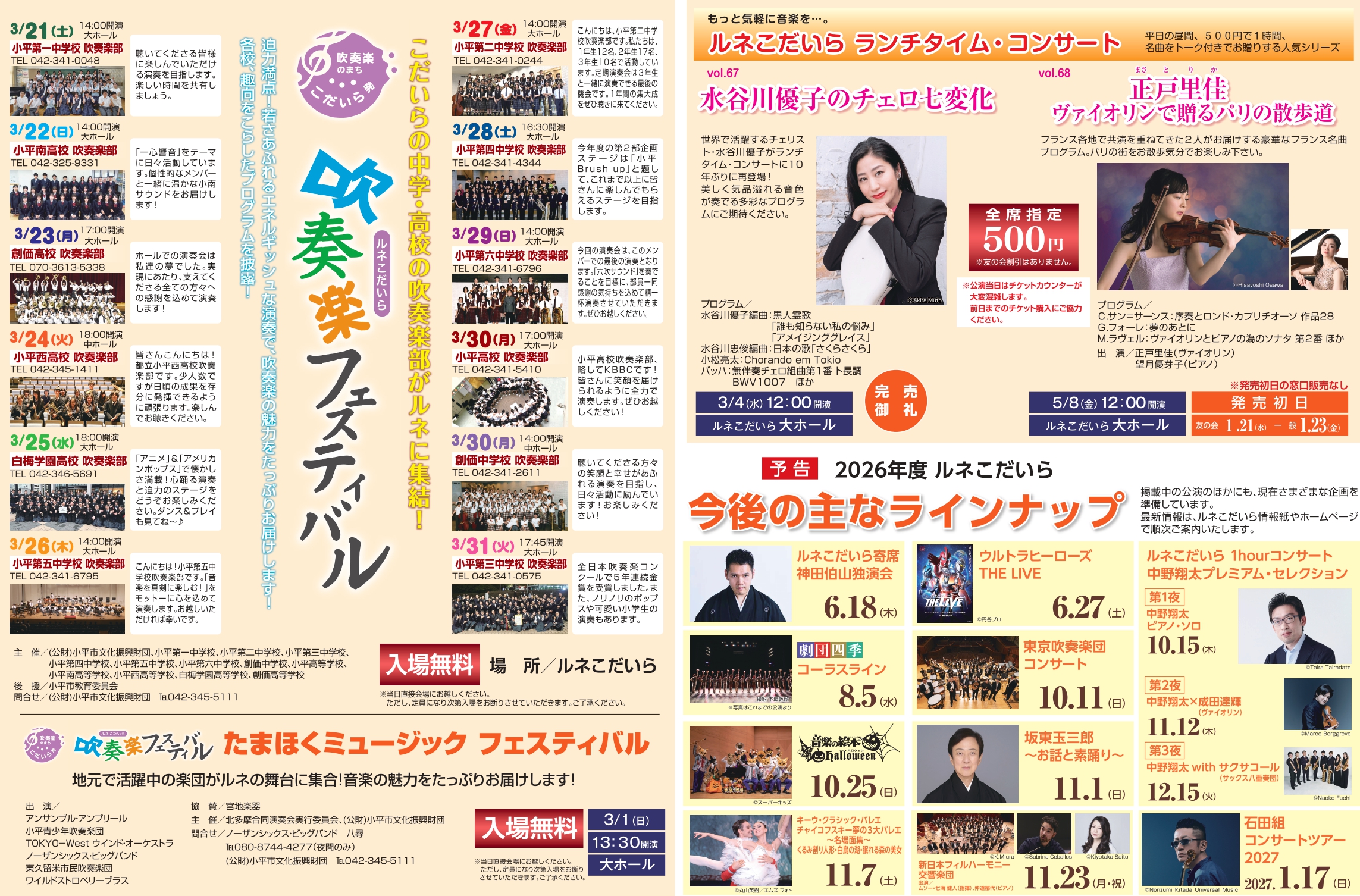 その他、チケット販売中の公演情報などは、ルネこだいら情報紙をご覧ください。