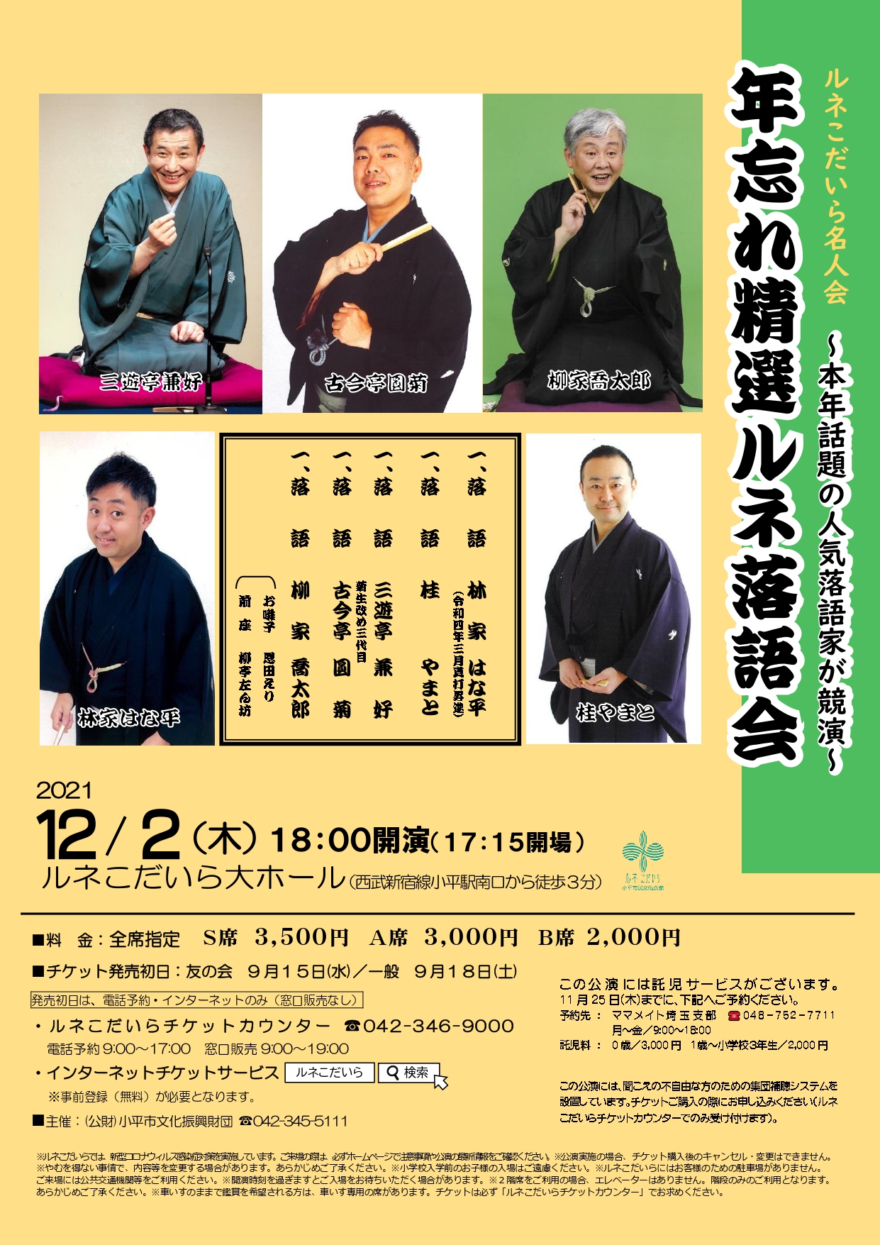 ルネこだいら名人会 年忘れ精選ルネ落語会 ~本年話題の人気落語家が競演~