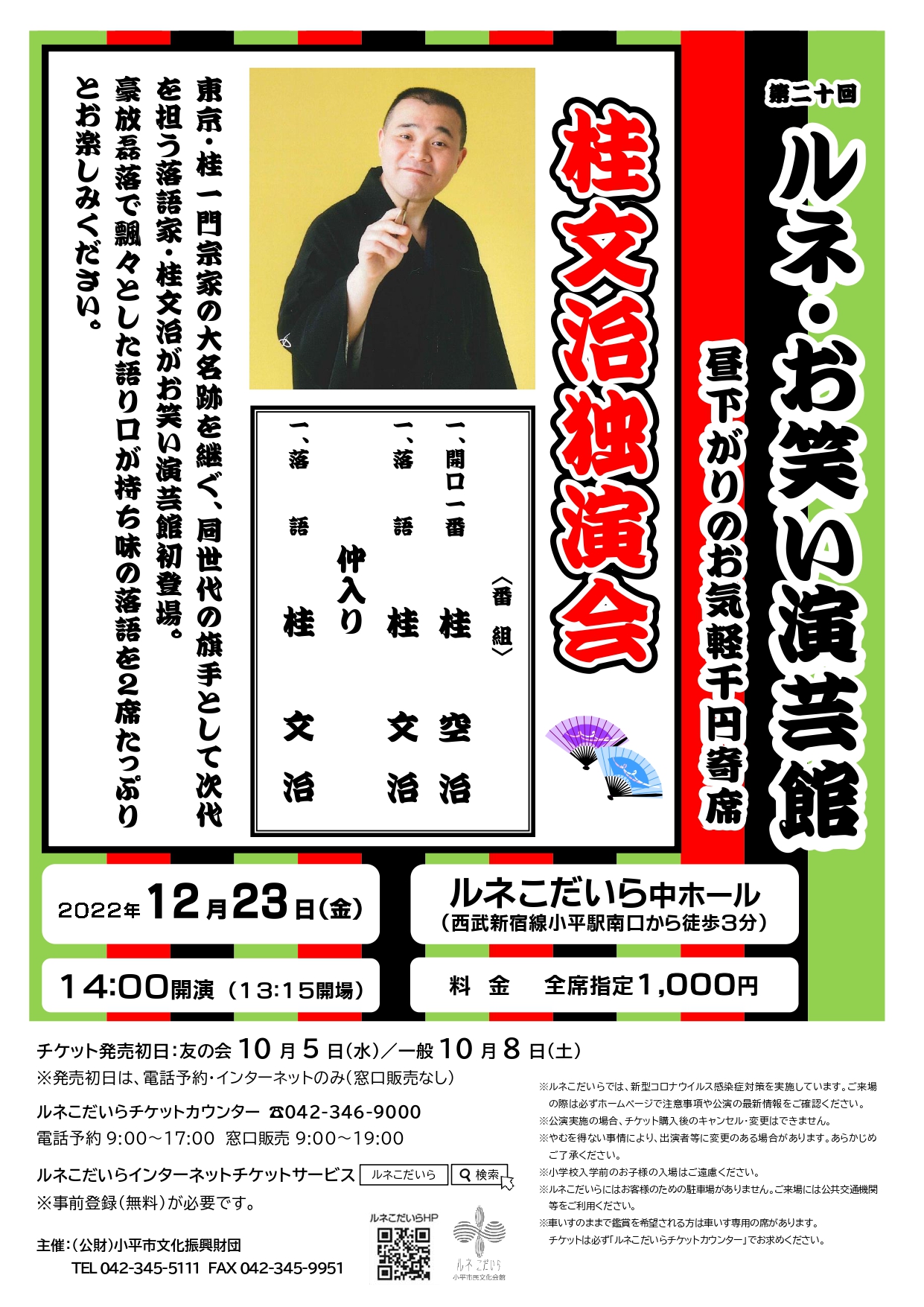 豪放磊落で飄々とした語り口が持ち味の落語を2席たっぷりとお楽しみください。