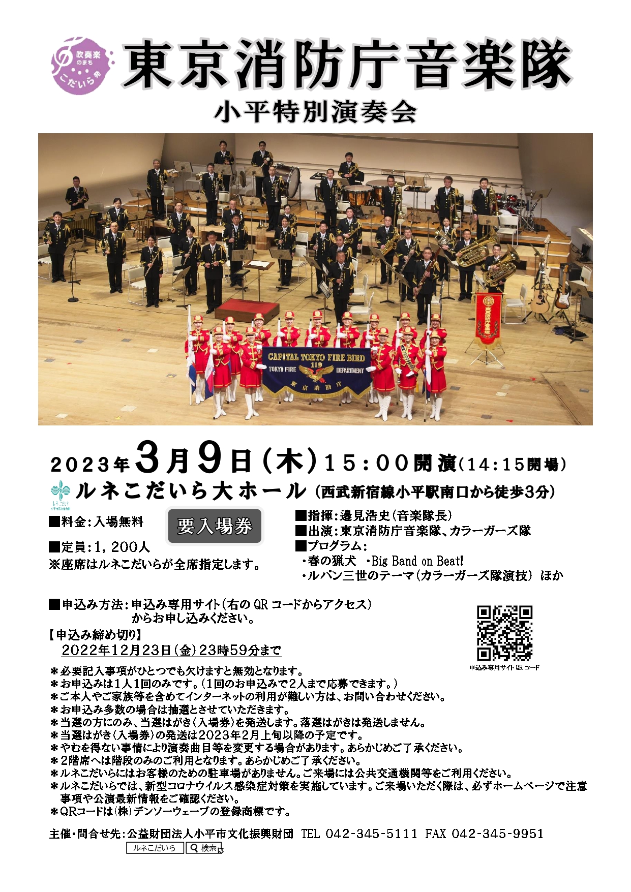 ※座席はルネこだいらが全席指定します。座席の変更はできません。