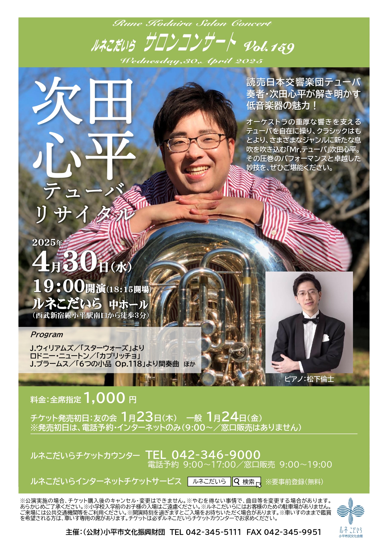 オーケストラの重厚な響きを支えるテューバを自在に操り、クラシックはもとより、さまざまなジャンルに新たな息吹を吹き込む「Mr.テューバ」次田心平。その圧巻のパフォーマンスと卓越した妙技を、ぜひご堪能ください。