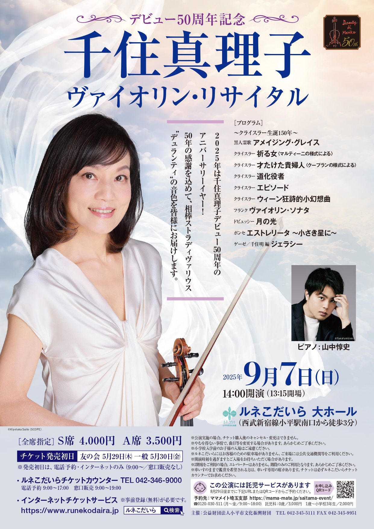 【完売御礼】デビュー50周年記念 千住真理子ヴァイオリン・リサイタル