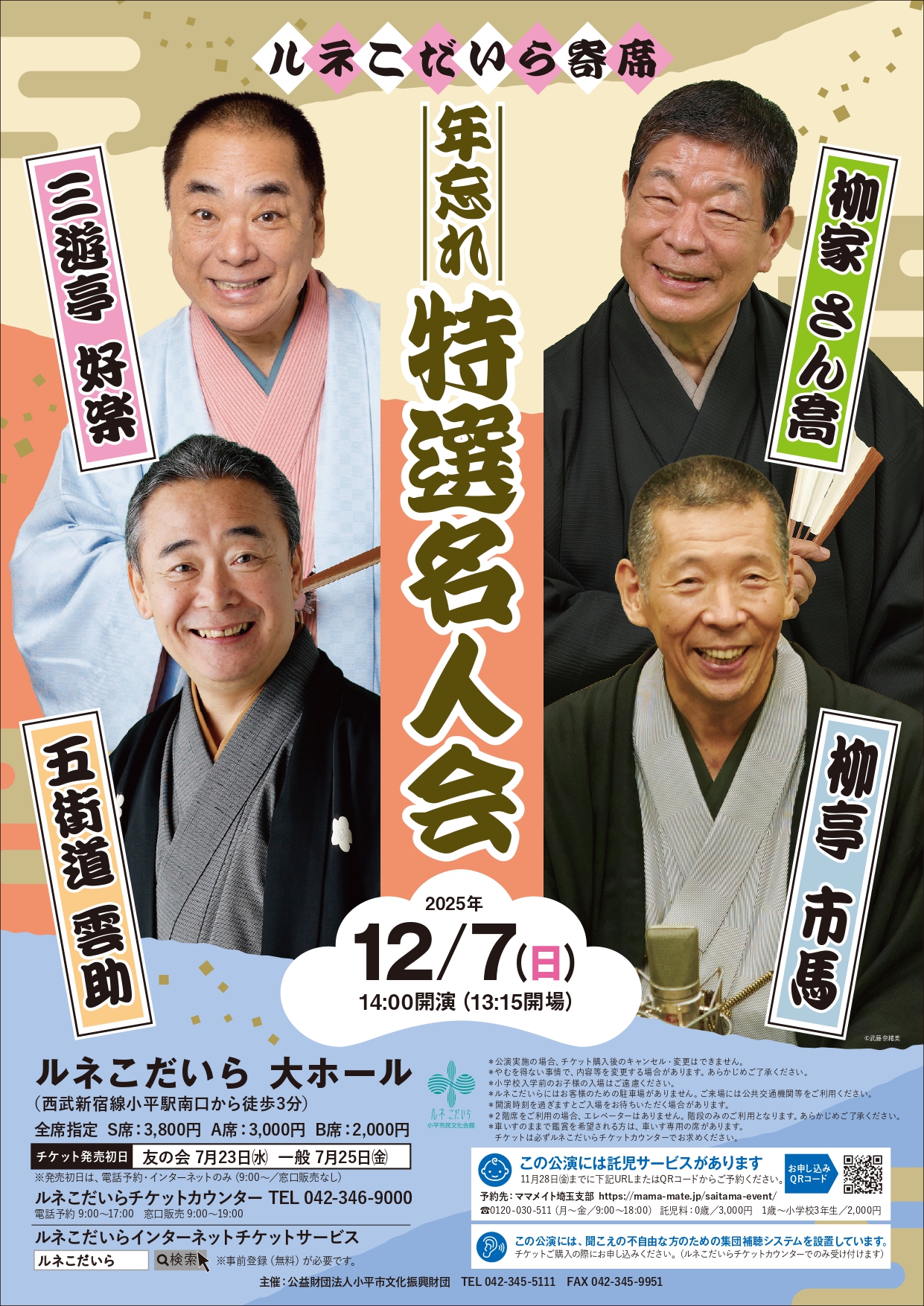【完売御礼】ルネこだいら寄席 年忘れ特選名人会