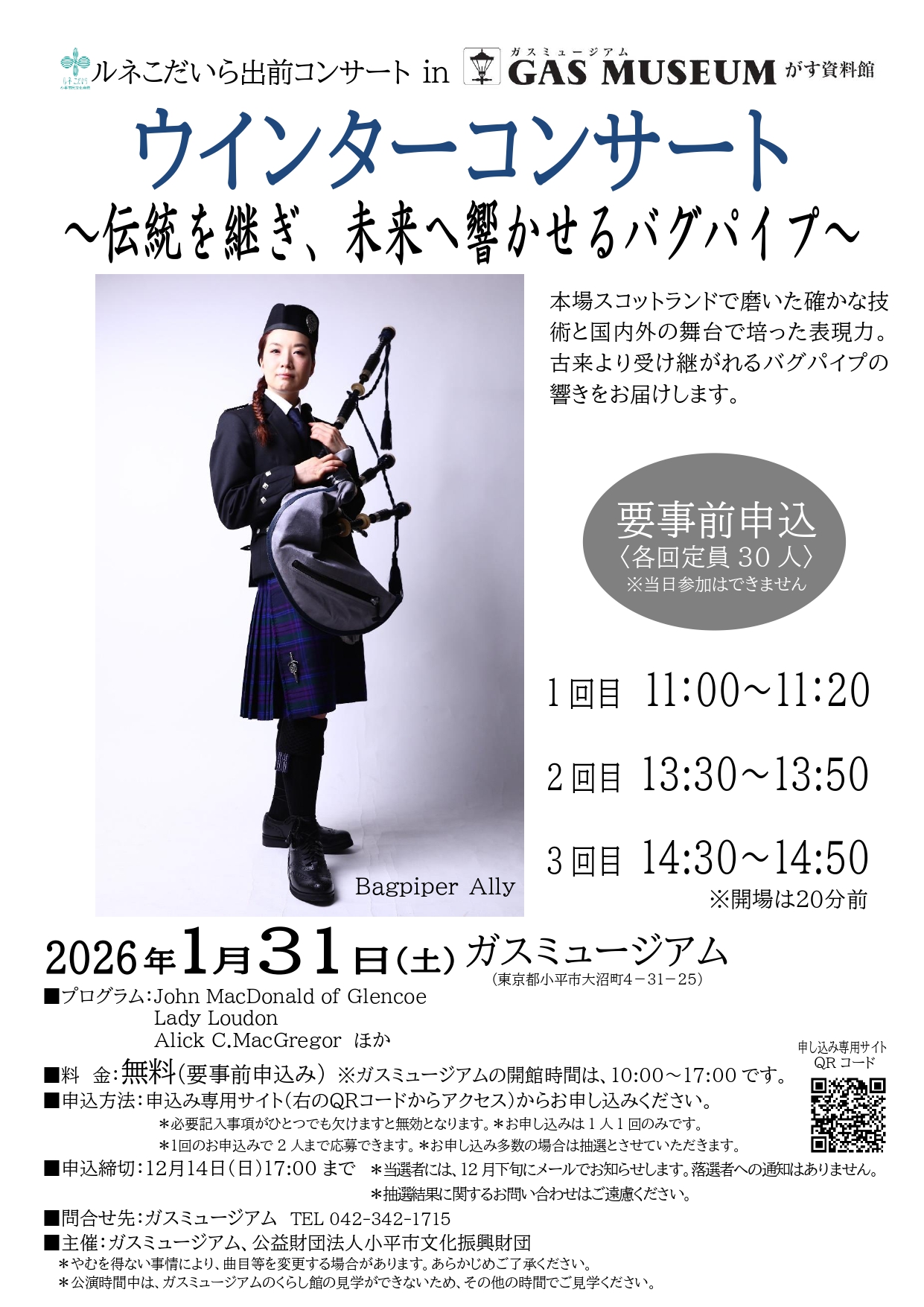 ルネこだいら出前コンサート in ガスミュージアム ウインターコンサート ~伝統を継ぎ、未来へ響かせるバグパイプ~