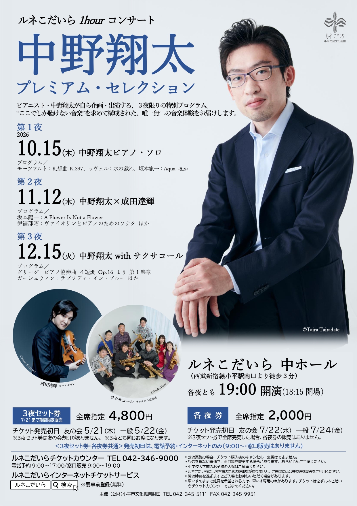 ルネこだいら1hourコンサート 中野翔太プレミアム・セレクション 第1夜 中野翔太ピアノ・ソロ